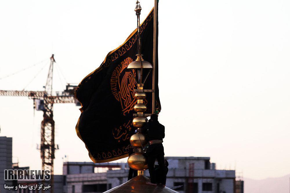در آخرین روز ماه ذی الحجه به نشانه آغاز ماه محرم پرچم مشکی بر فراز گنبد و پوشش ضریح حرم مطهر