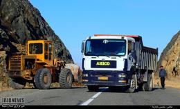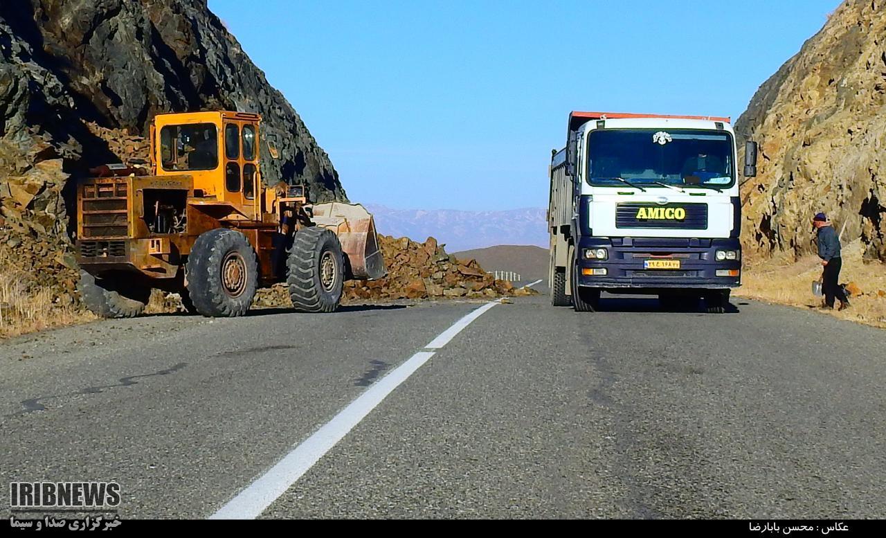 مسدود شدن جاده فرعی ارومیه سلماس براثر ریزش کوه و تلاش راهداران برای بازگشایی مسیر