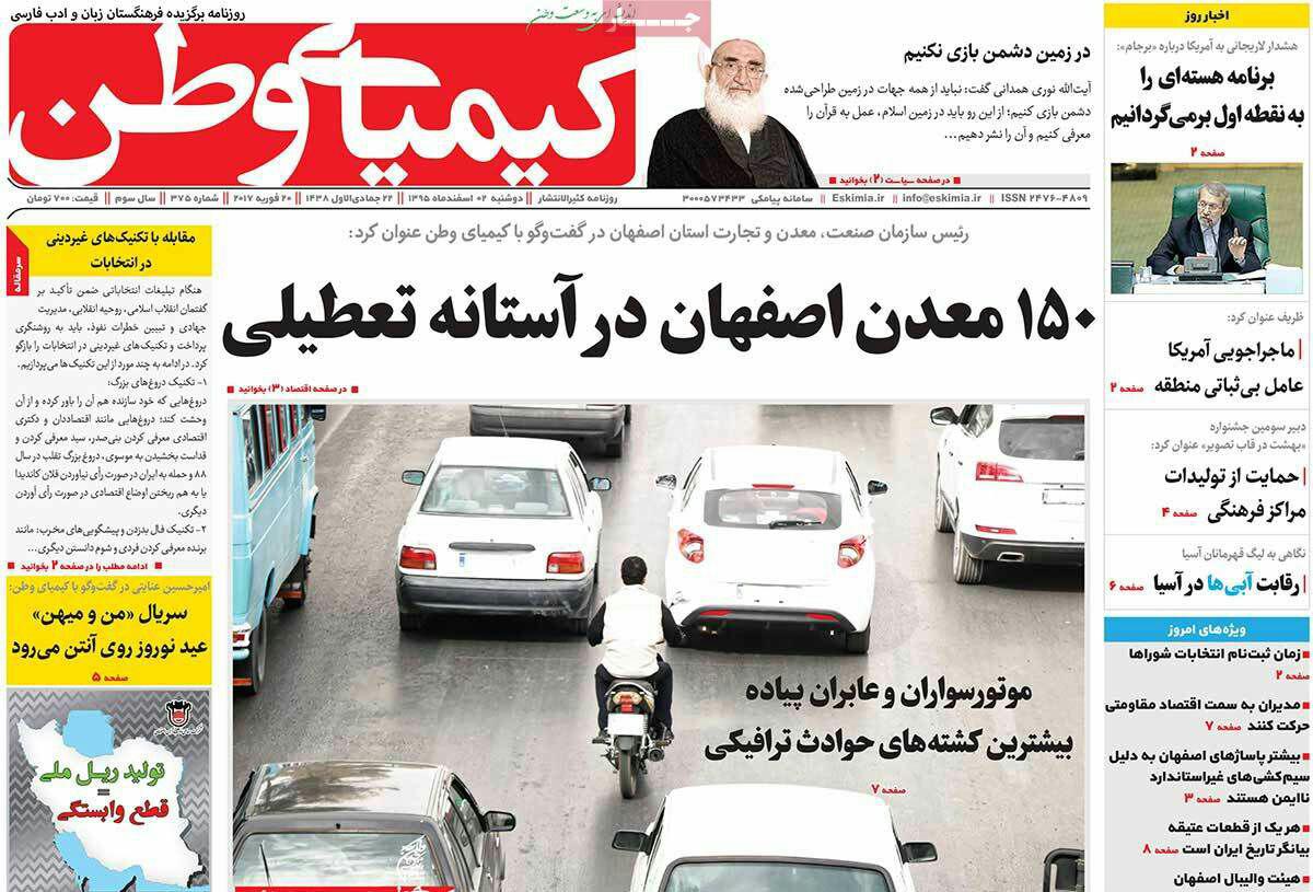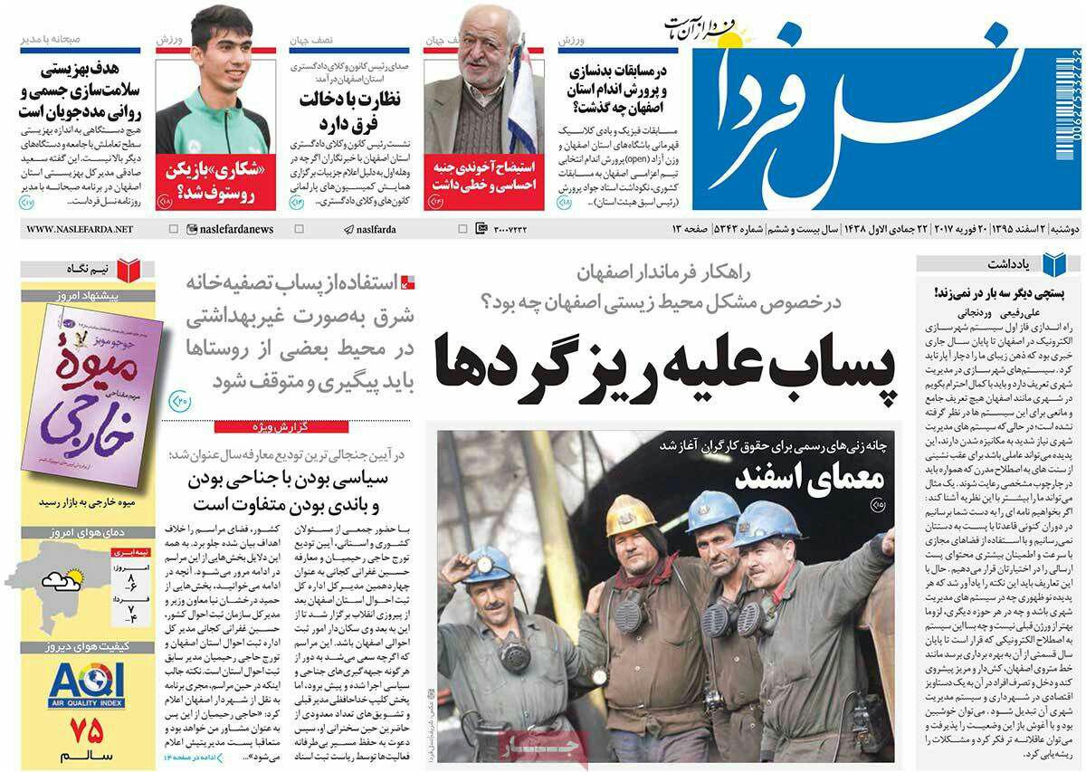 صفحه نخست روزنامه های اصفهان ، 2 اسفند 95