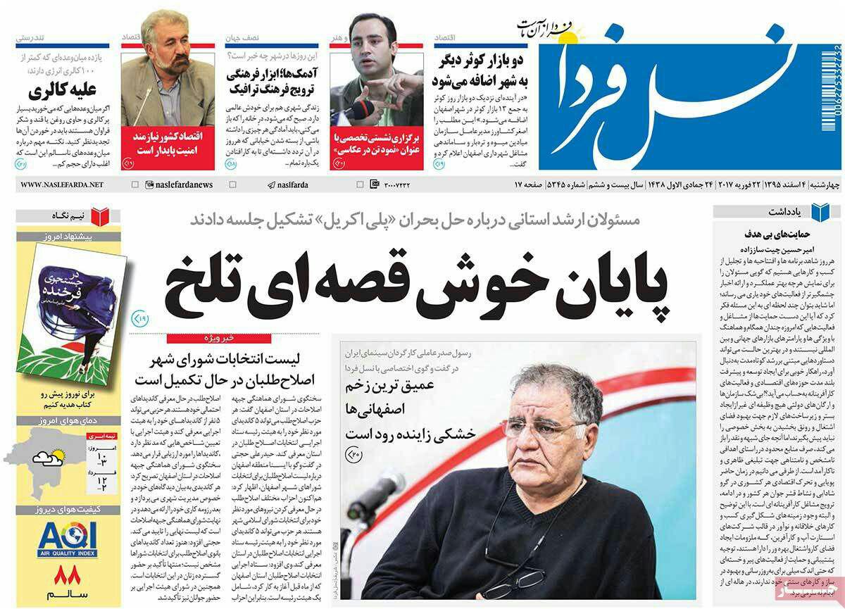صفحه نخست روزنامه های اصفهان ، 4 اسفند 95