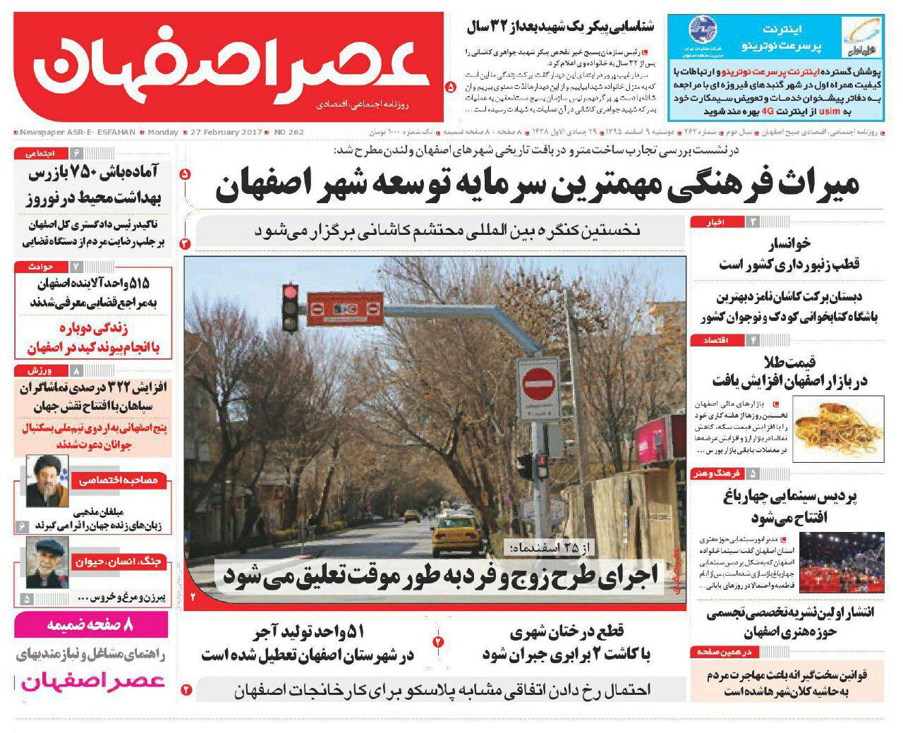 روزنامه های امروز اصفهان در یک نگاه ، 9 اسفند 1395