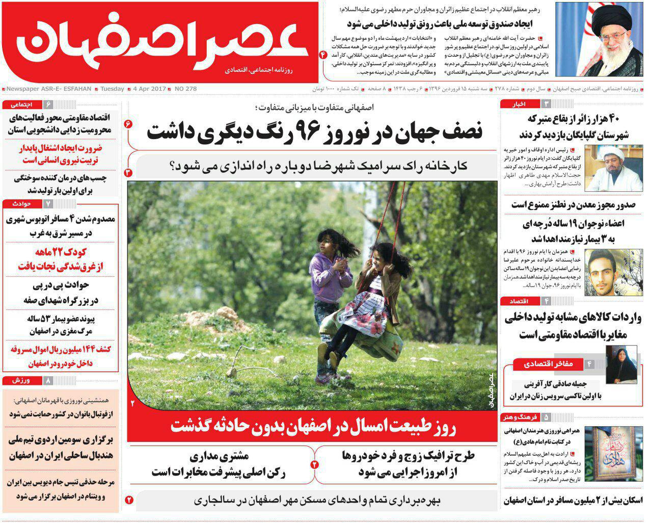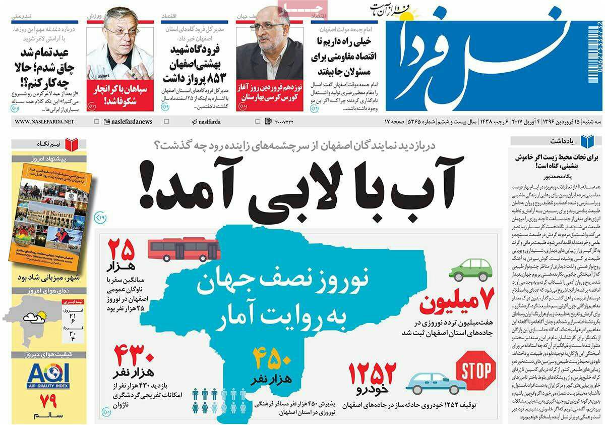 عناوین روزنامه های صبح اصفهان،15 فروردین 96