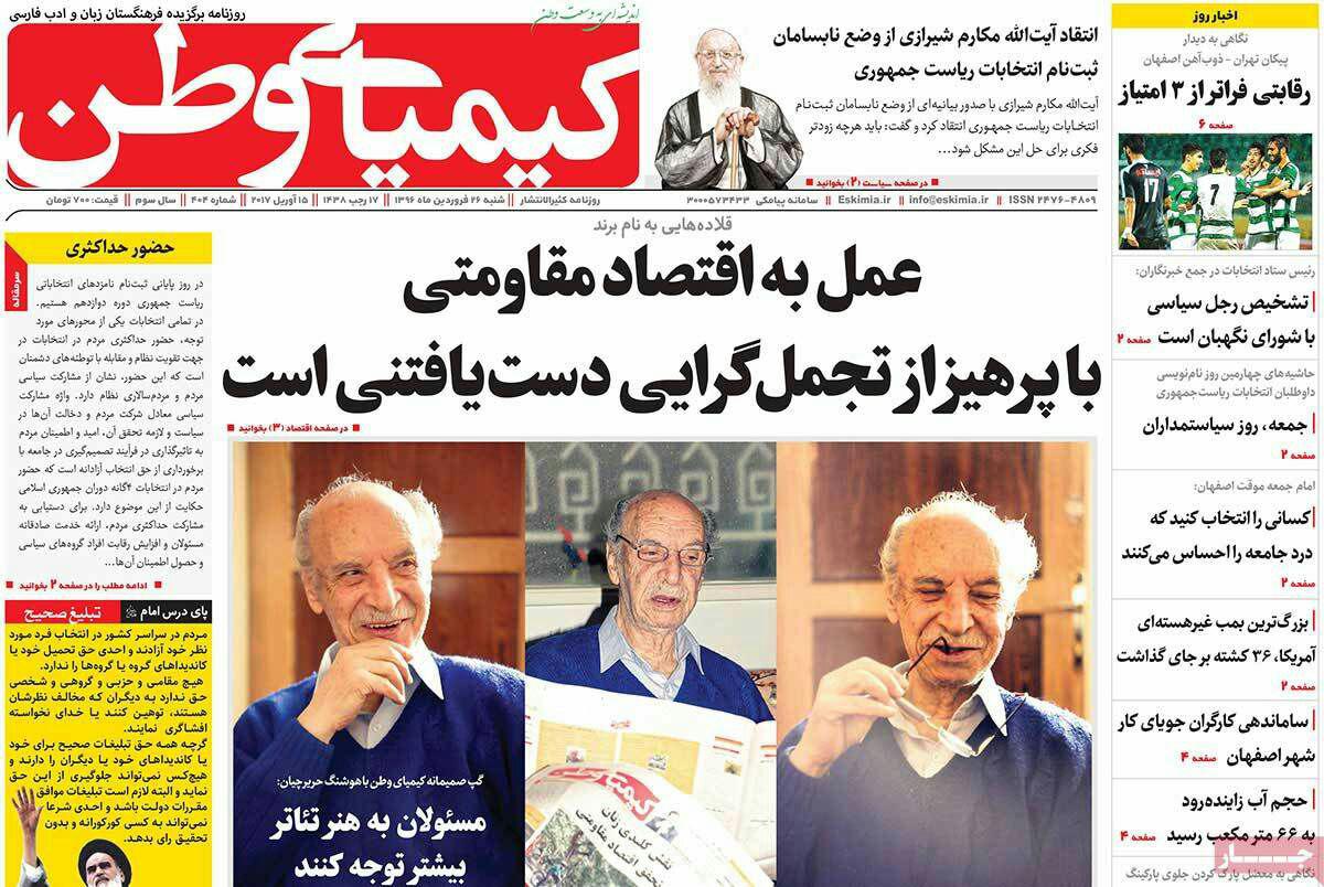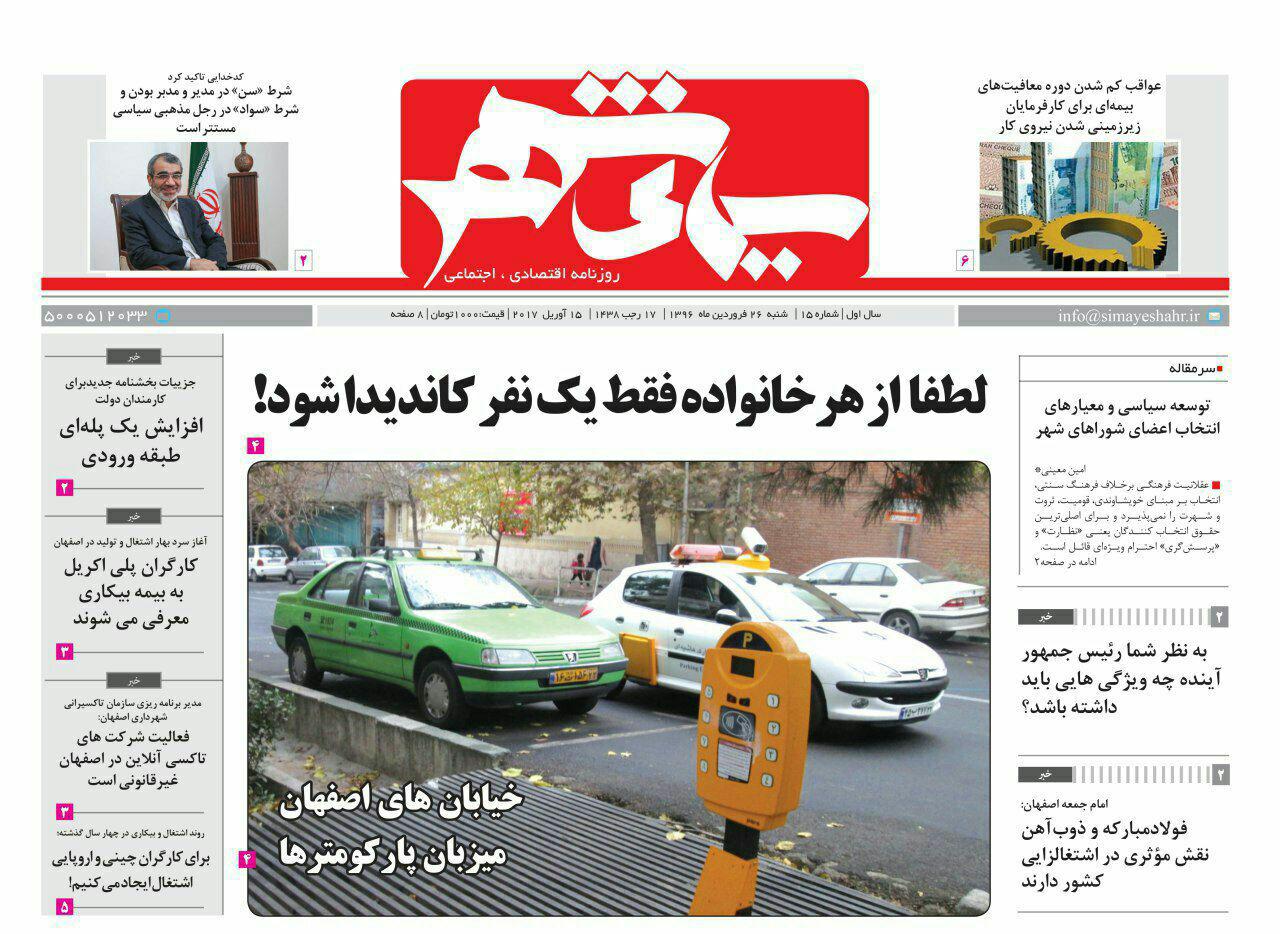 صفحه نخست روزنامه های امروز اصفهان ، 26 فروردین 96