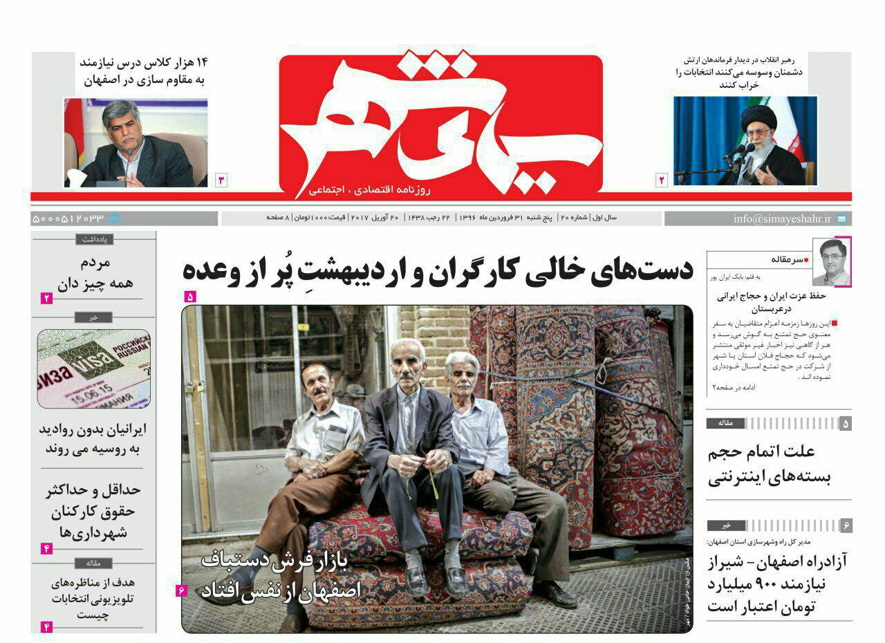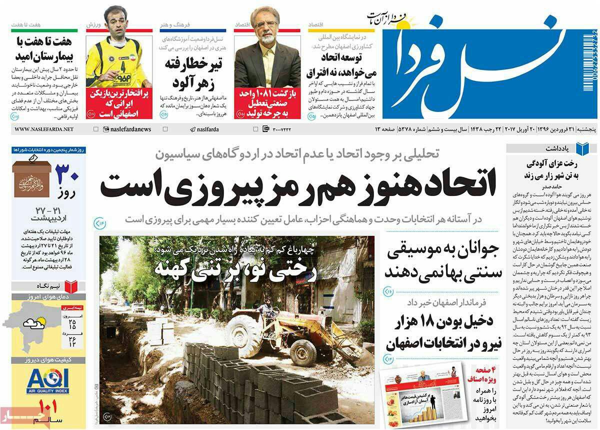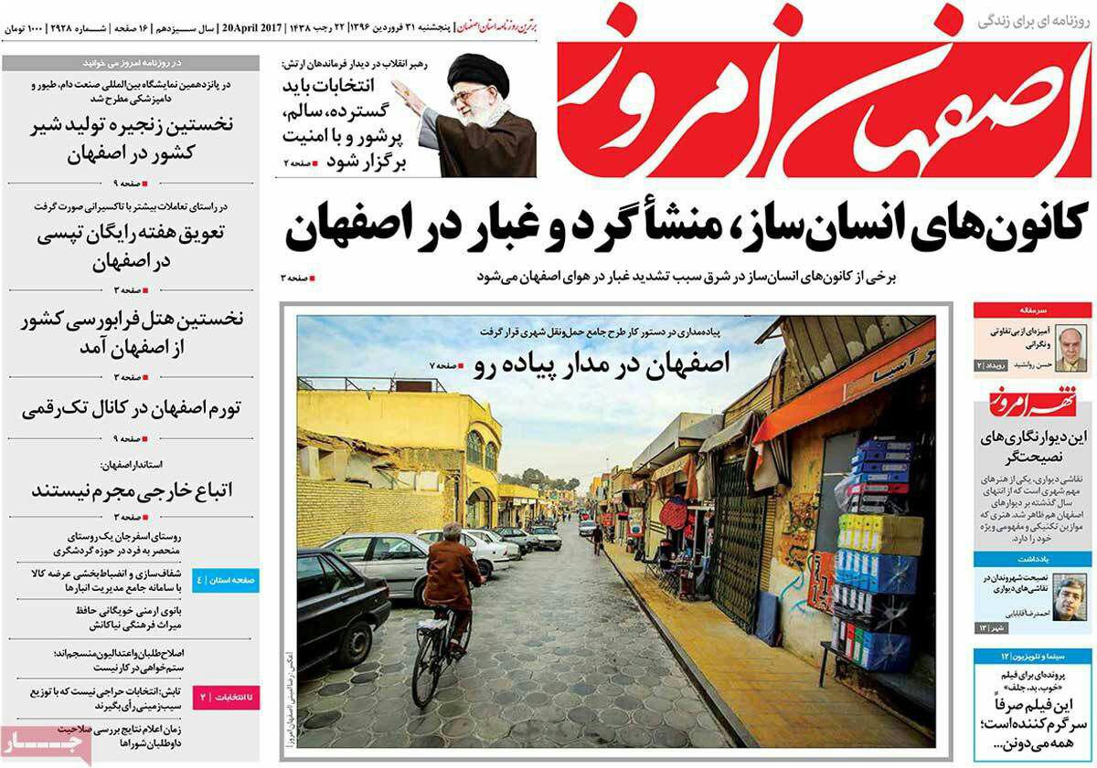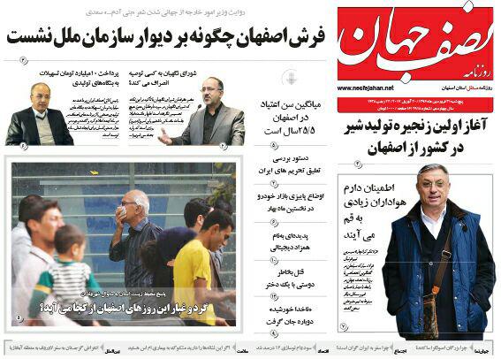 عناوین روزنامه های صبح اصفهان ، 31 فروردین 1396