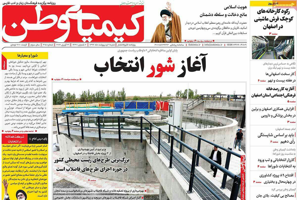 عناوین روزنامه های صبح اصفهان ، 9 اردیبهشت 1396