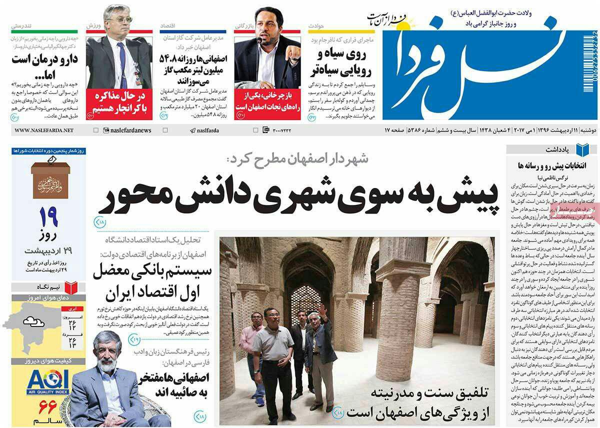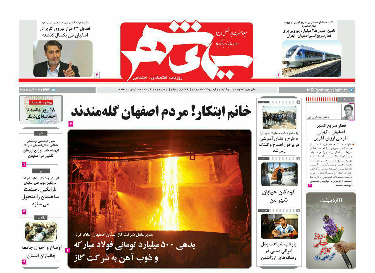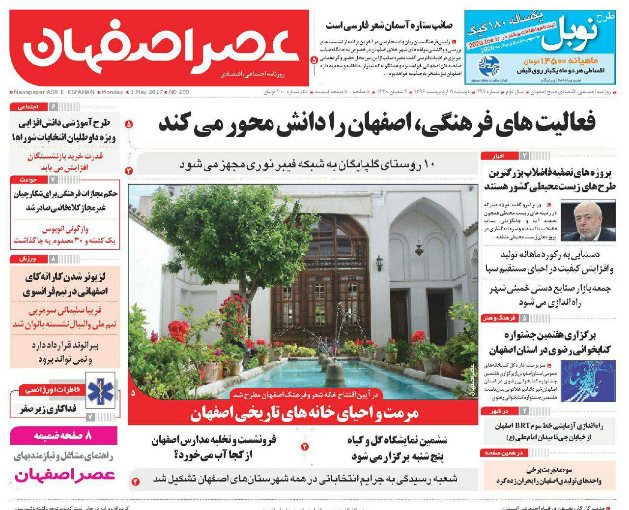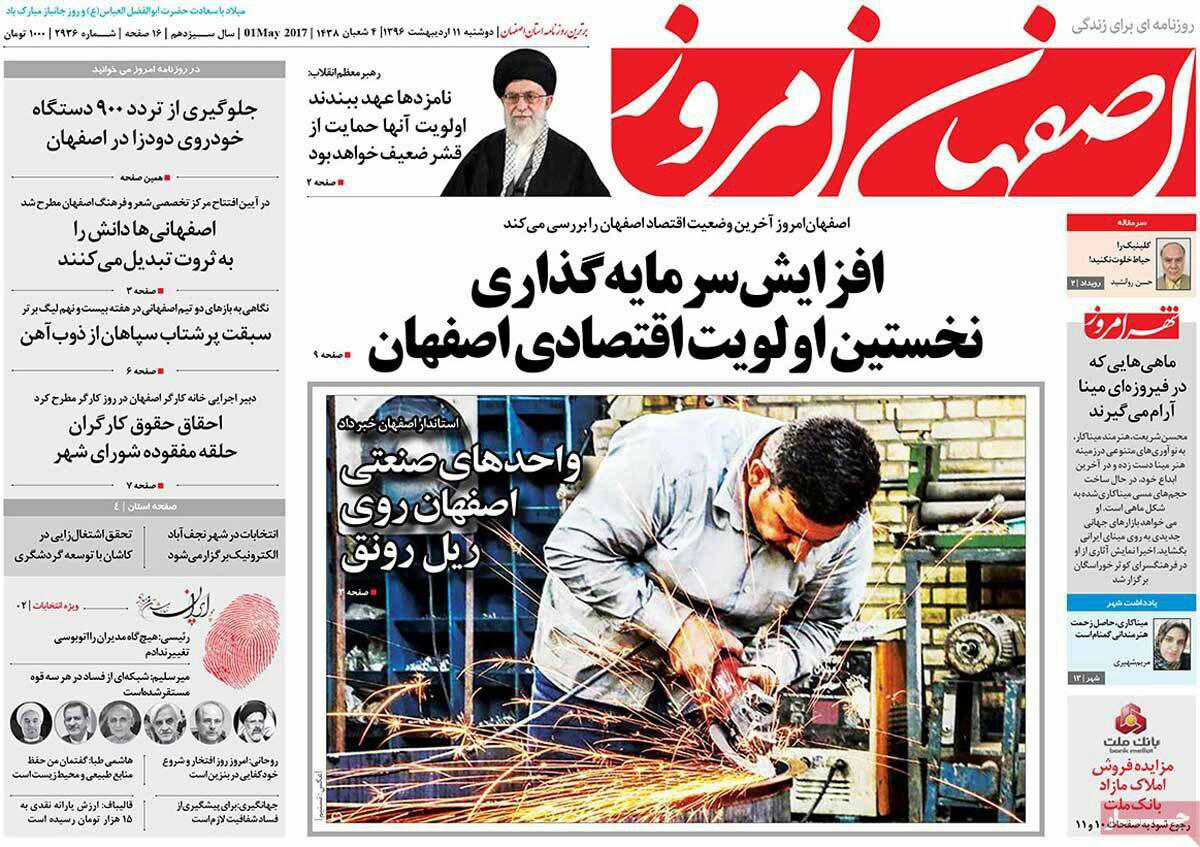 عناوین روزنامه های صبح اصفهان ، 11 اردیبهشت 1396