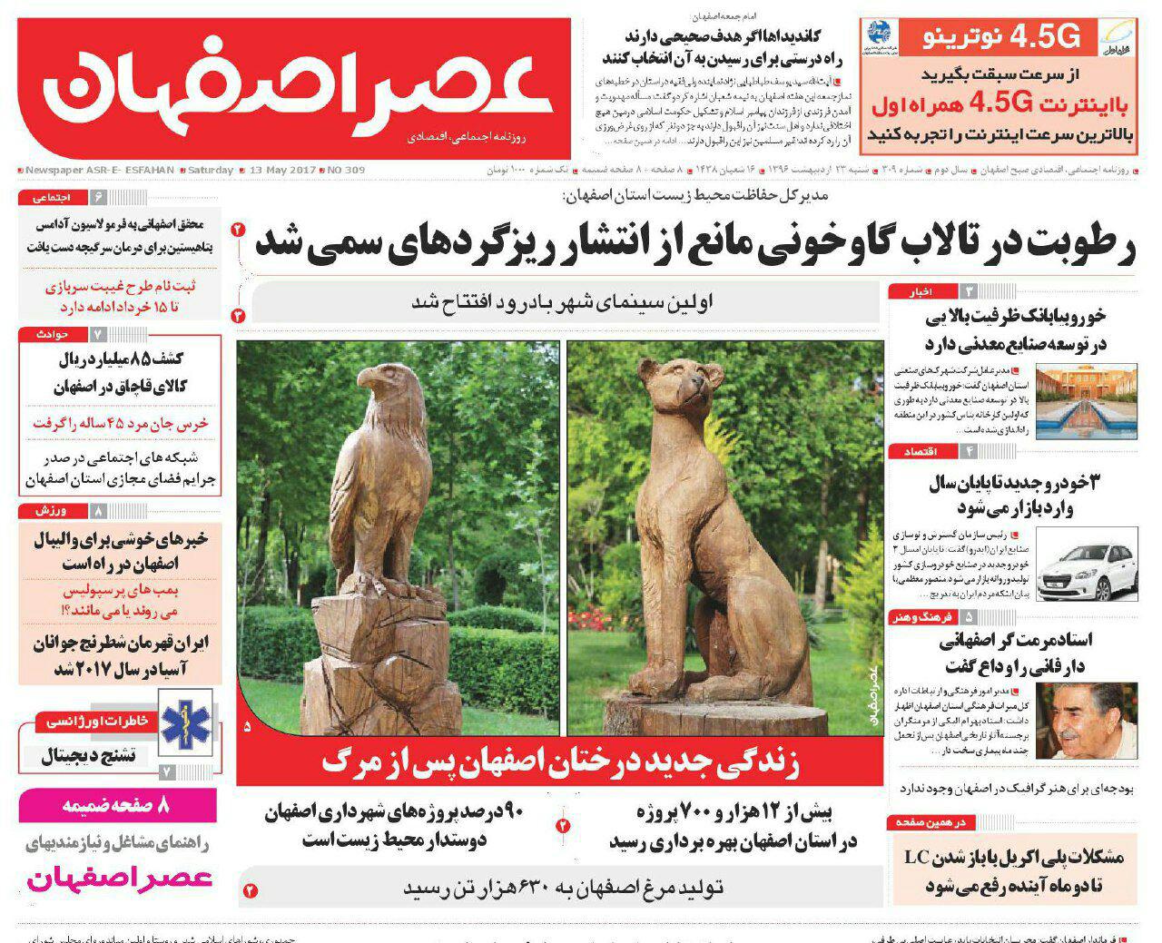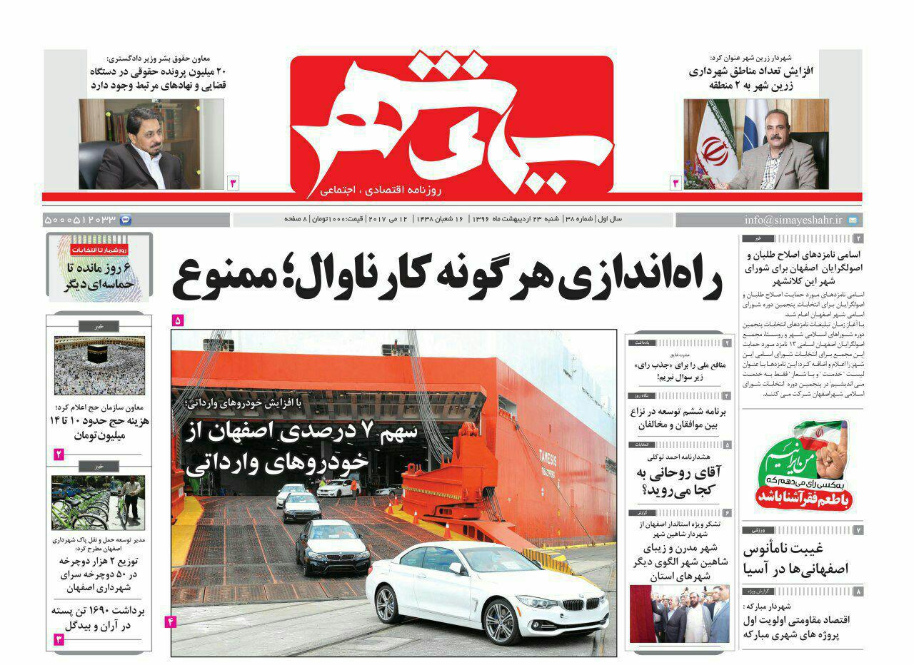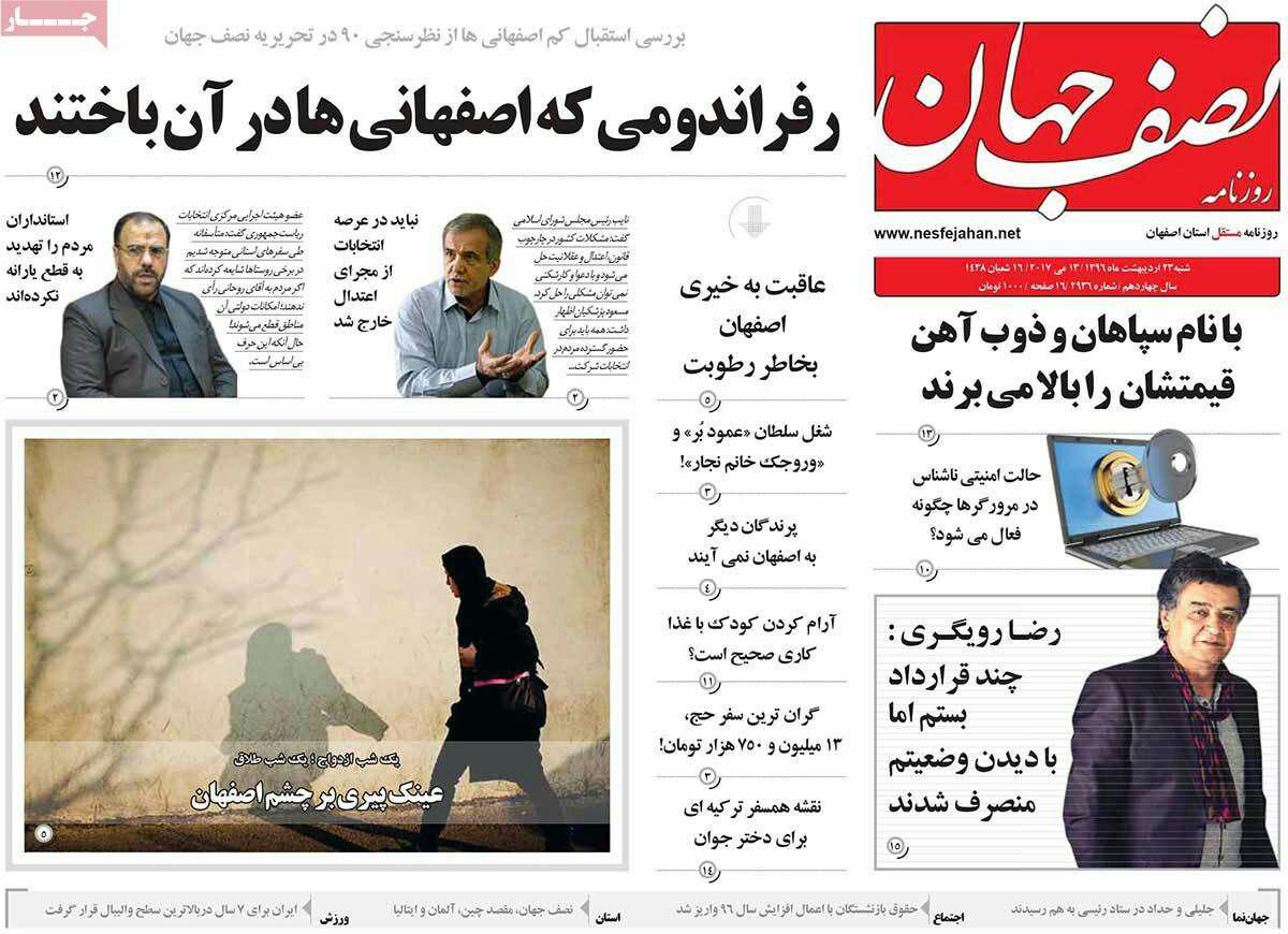 صفحه نخست روزنامه های اصفهان ، 23 اردیبهشت 1396
