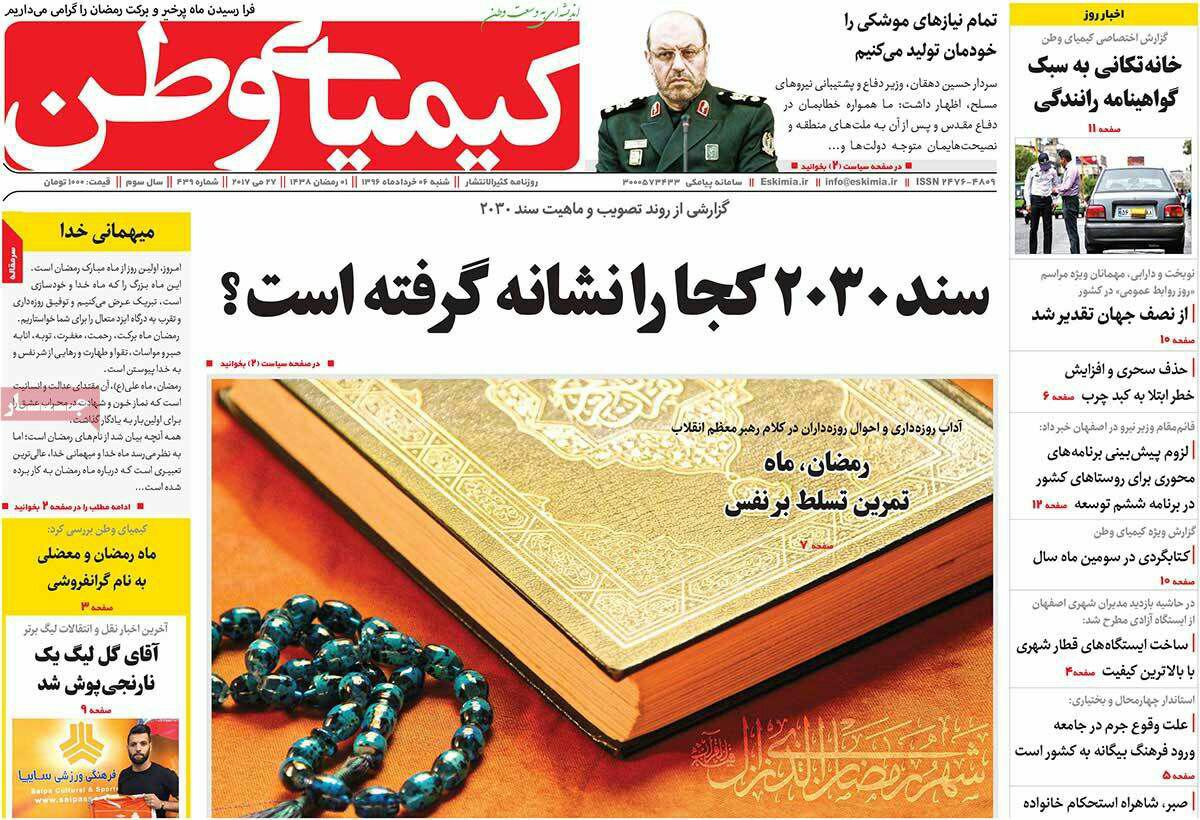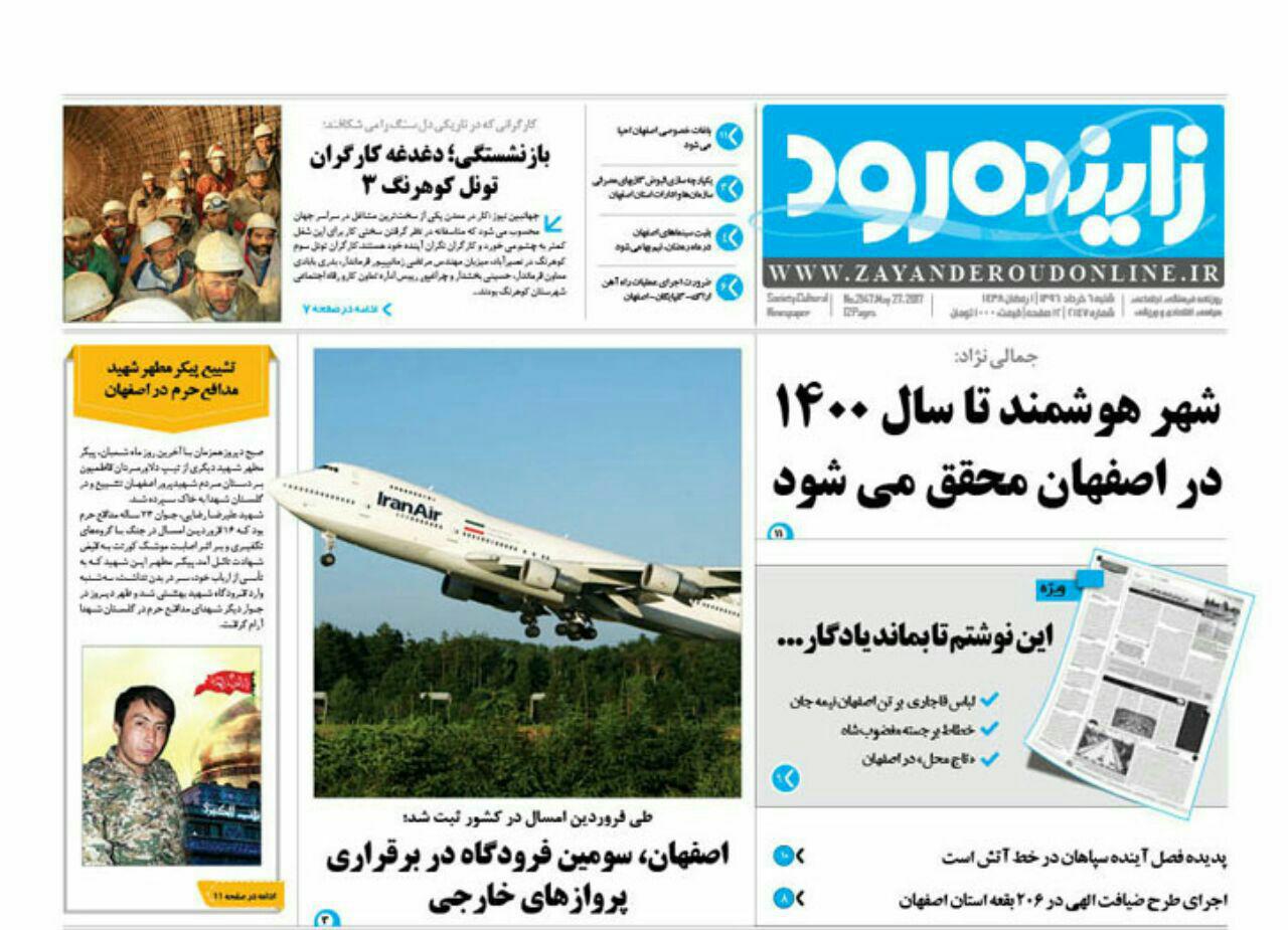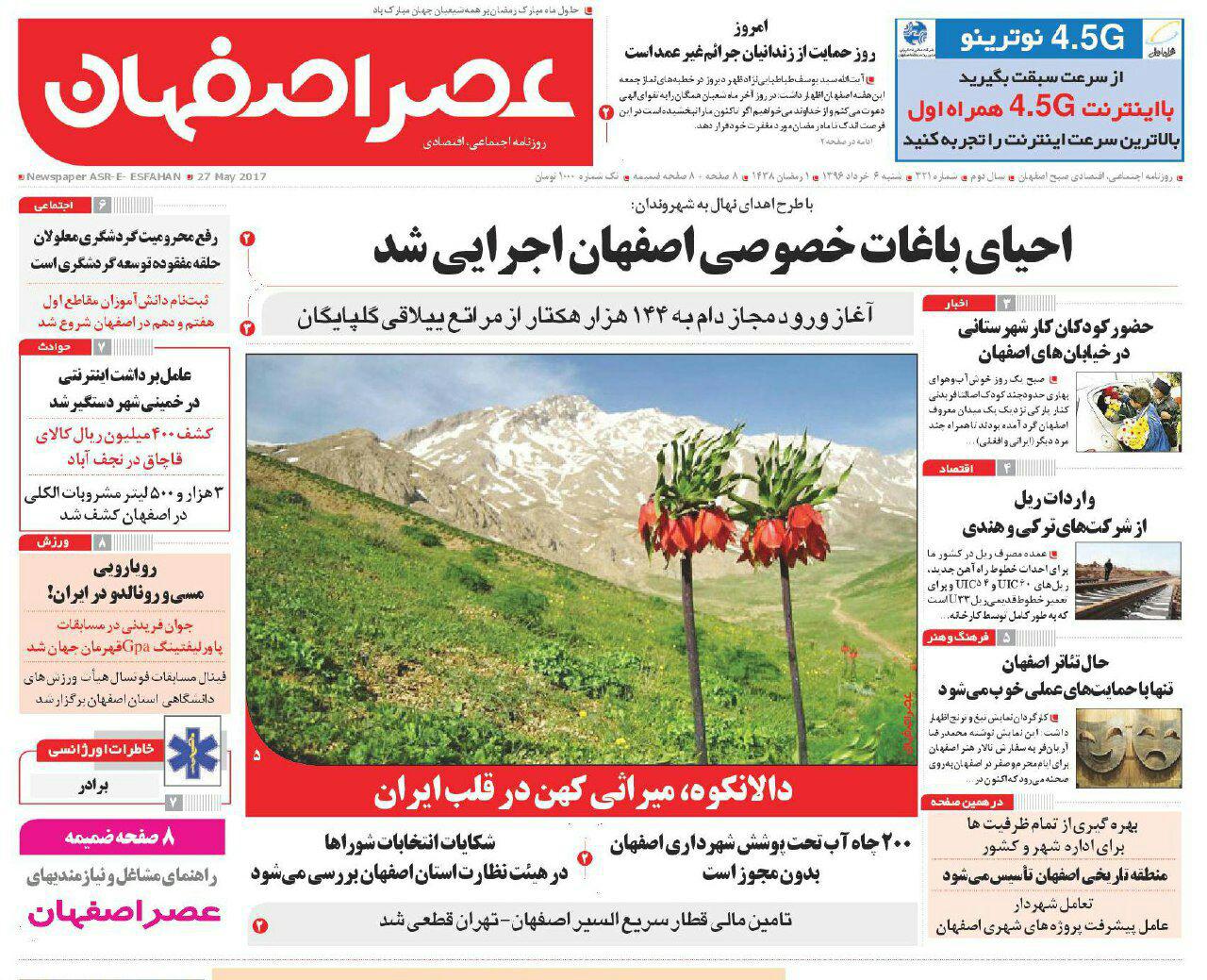 صفحه نخست روزنامه های اصفهان ، 6 خرداد 1396