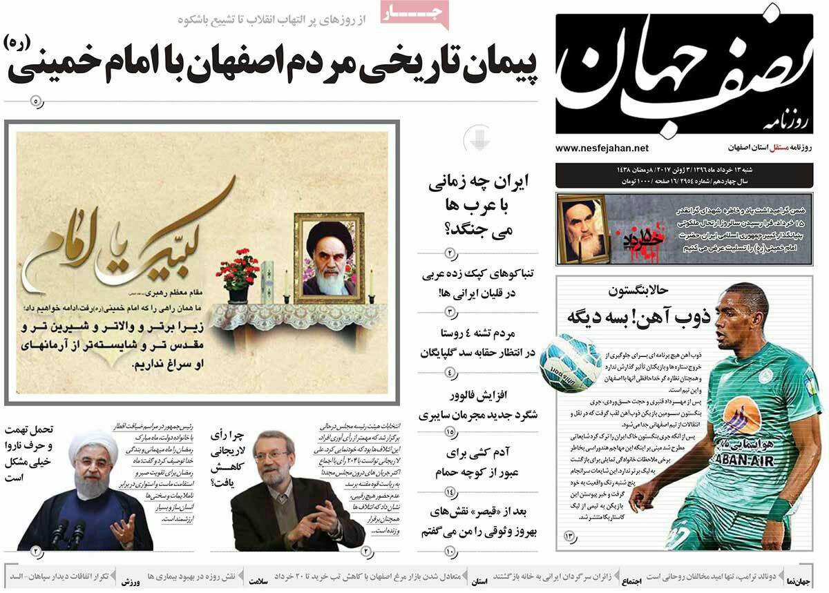 صفحه نخست روزنامه های امروز اصفهان ، 13 خرداد 1396