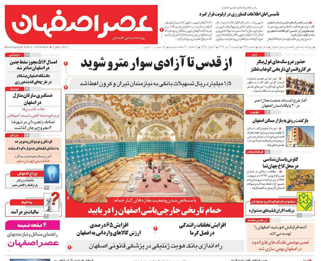 صفحه نخست روزنامه های امروز اصفهان ، 11 تیر 1396