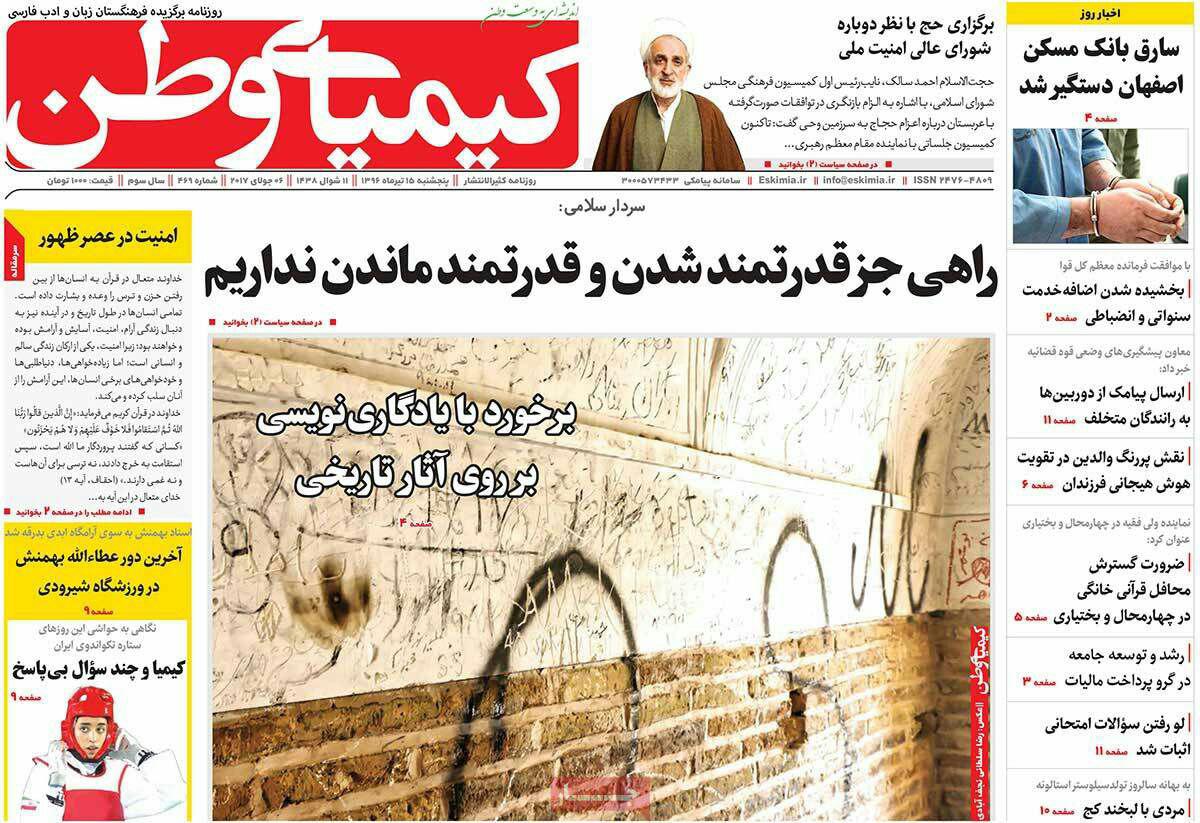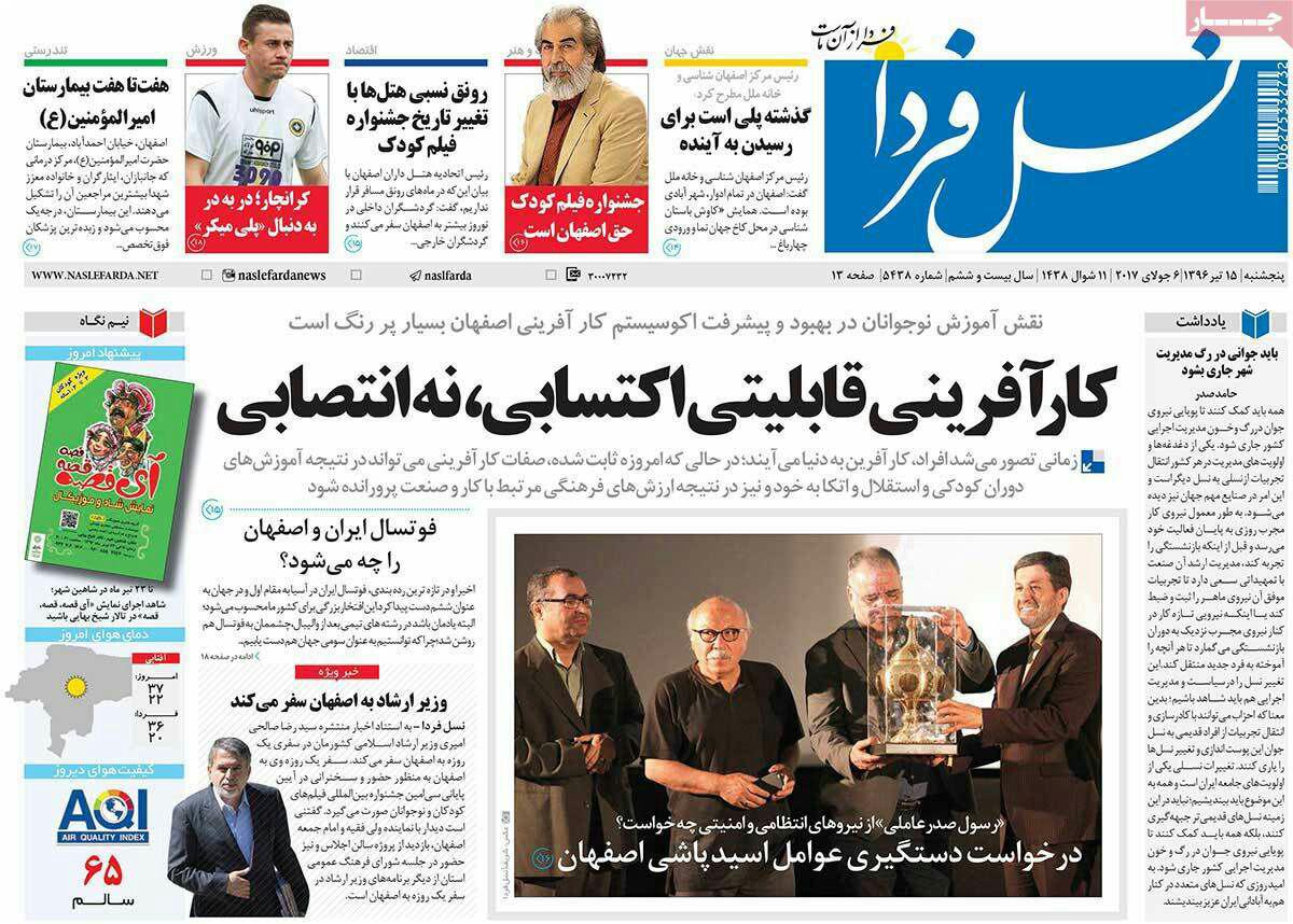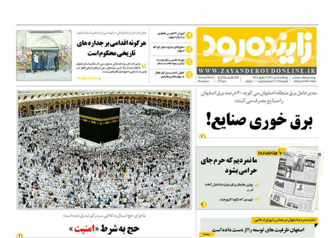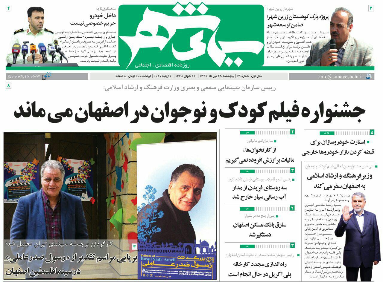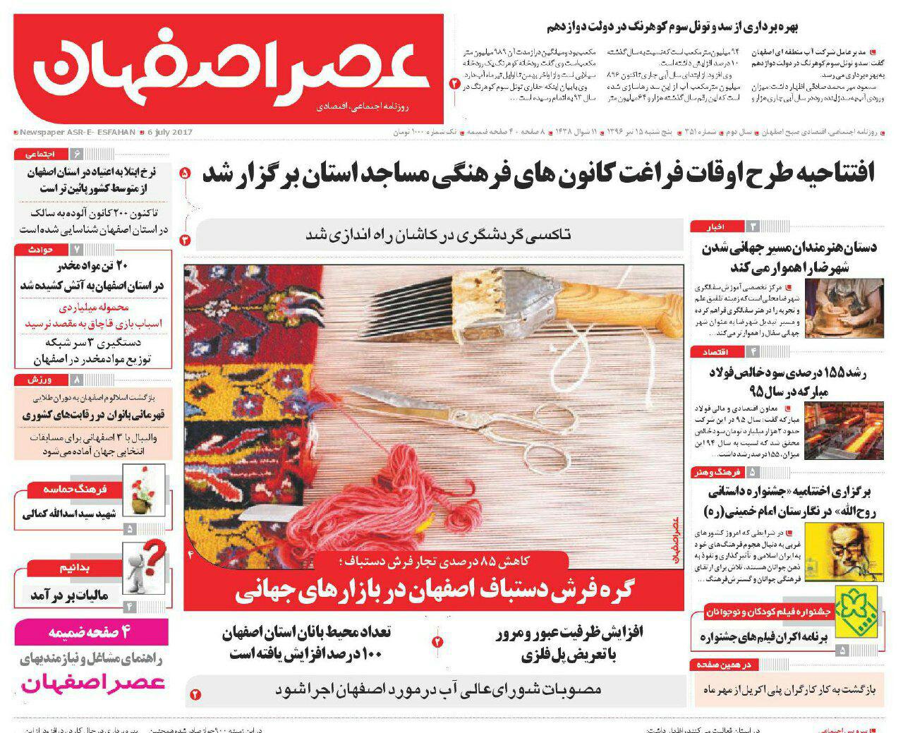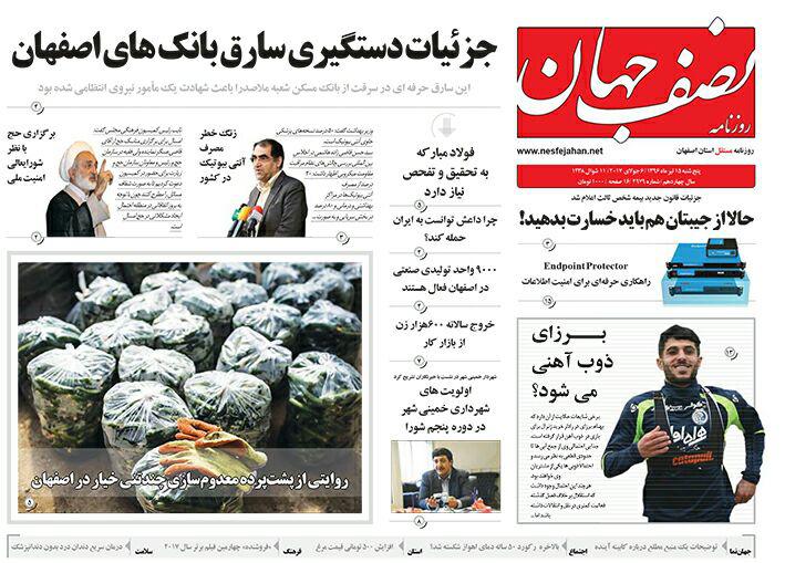 صفحه نخست روزنامه های امروز اصفهان، 15 تیر 1396