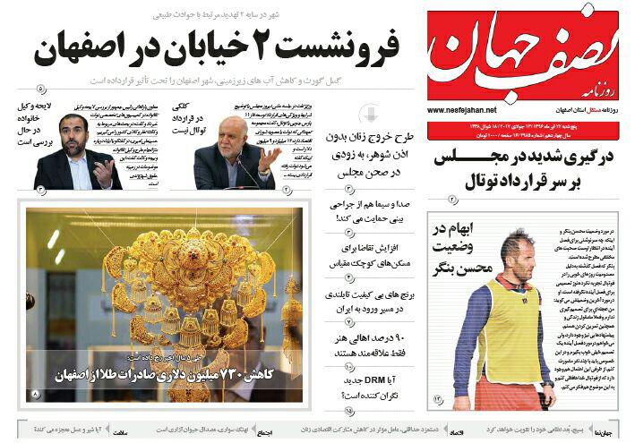 صفحه نخست روزنامه های امروز اصفهان، 22 تیر 1396