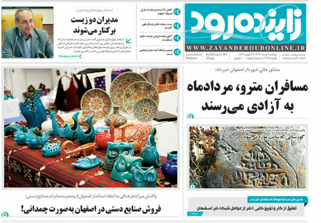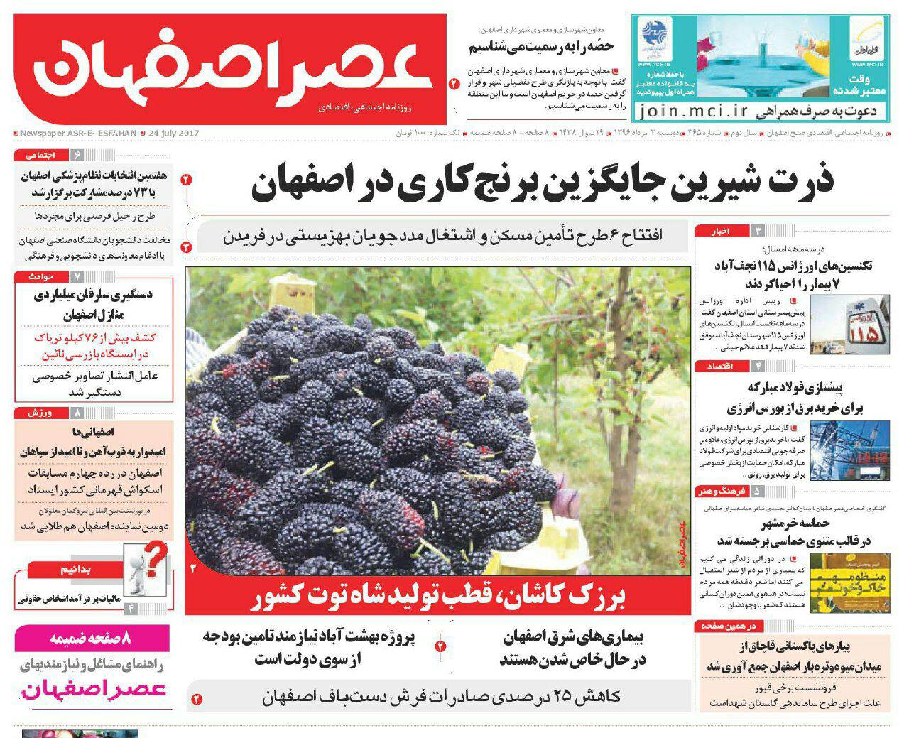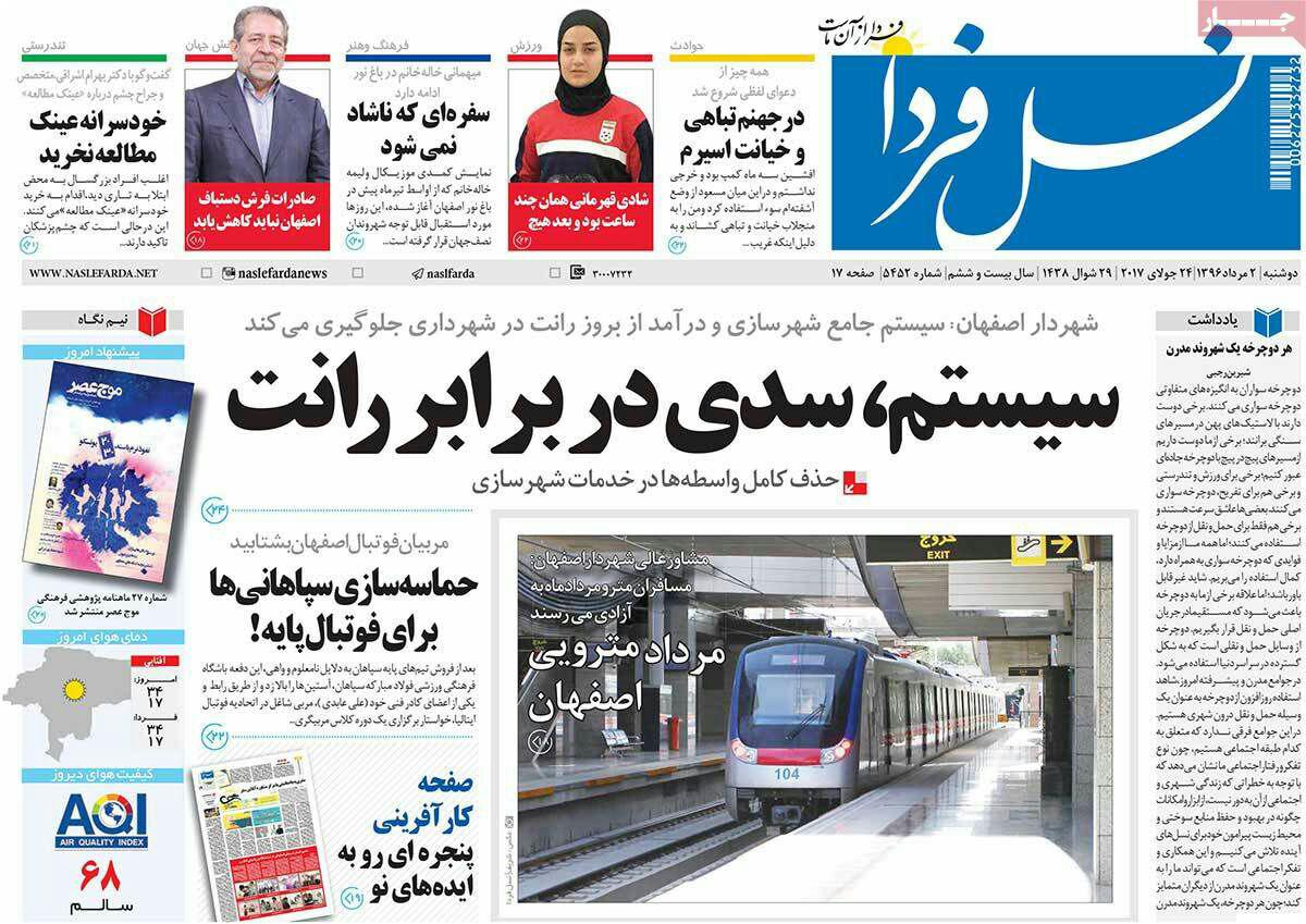 صفحه نخست روزنامه های اصفهان، 2 مرداد 96