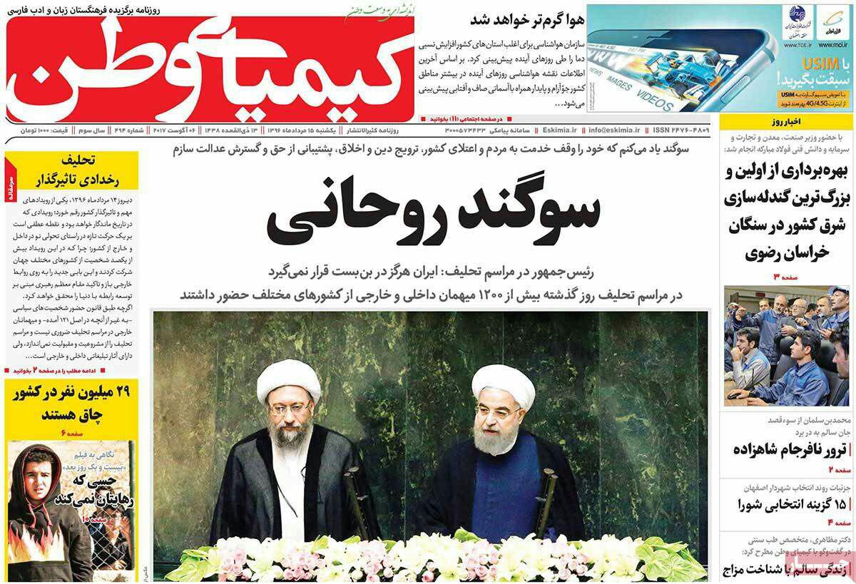 صفحه نخست روزنامه های امروز، 15 مرداد 1396