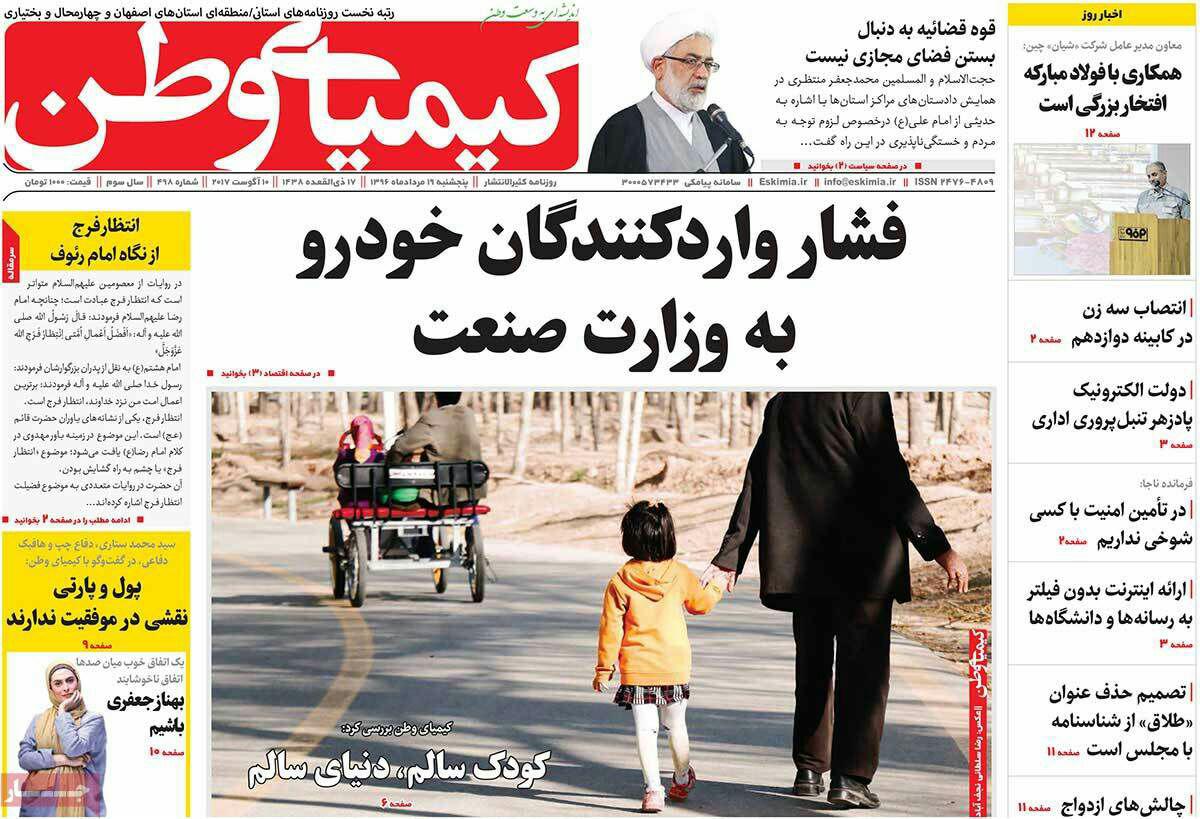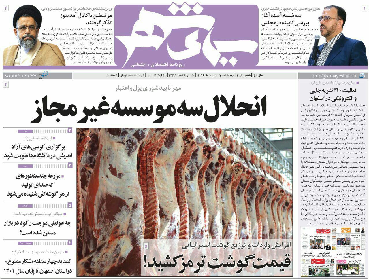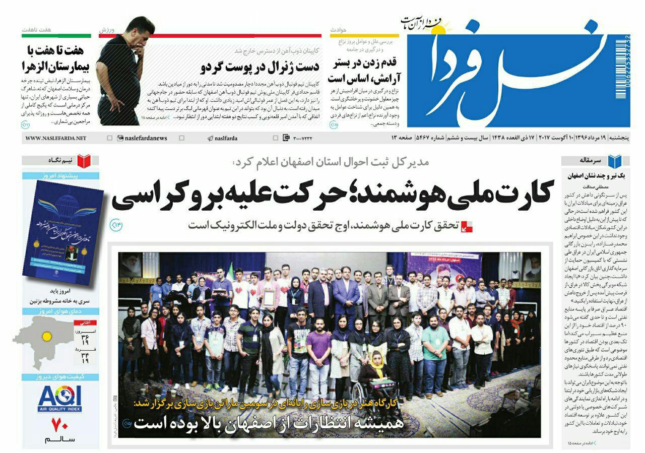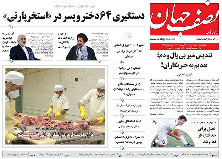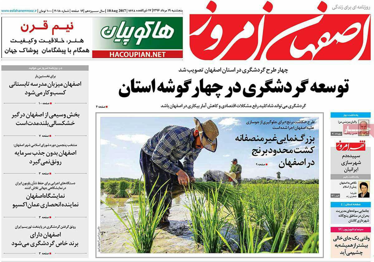صفحه نخست روزنامه های اصفهان ، 19 مرداد 1396
