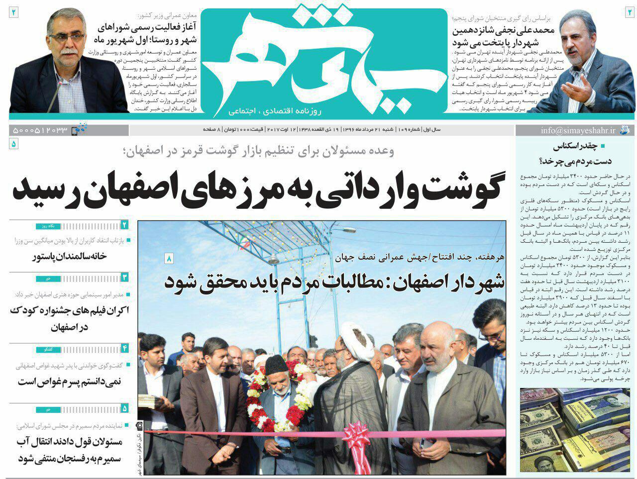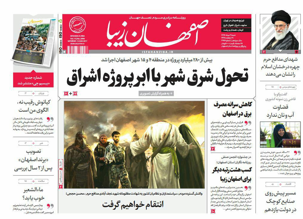 صفحه نخست روزنامه های اصفهان ، 21 مرداد 1396