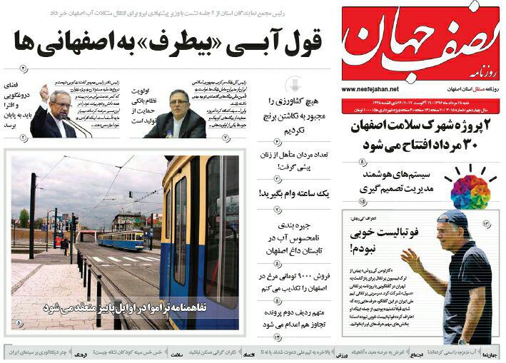 عناوین روزنامه های صبح اصفهان ،بیست و هشتم مرداد 1396