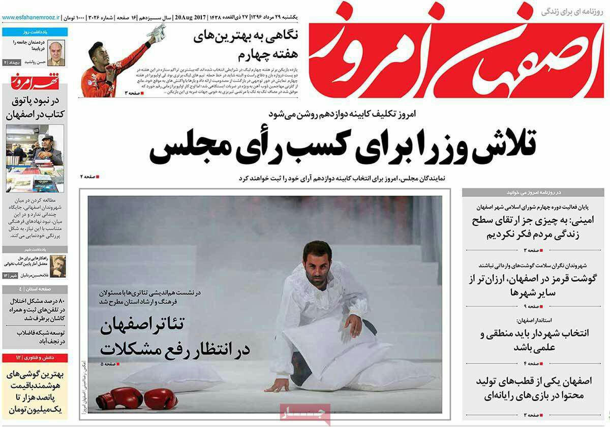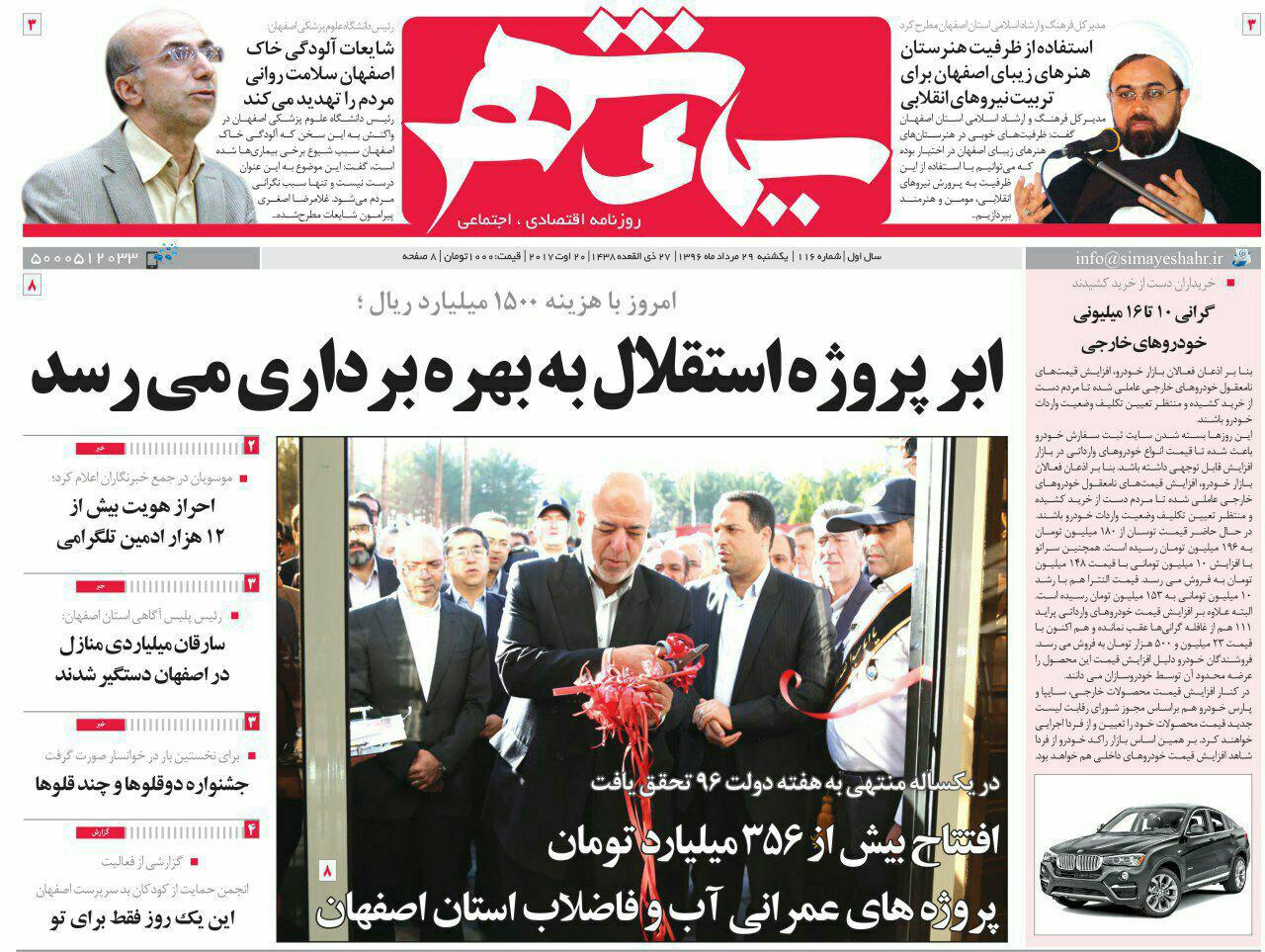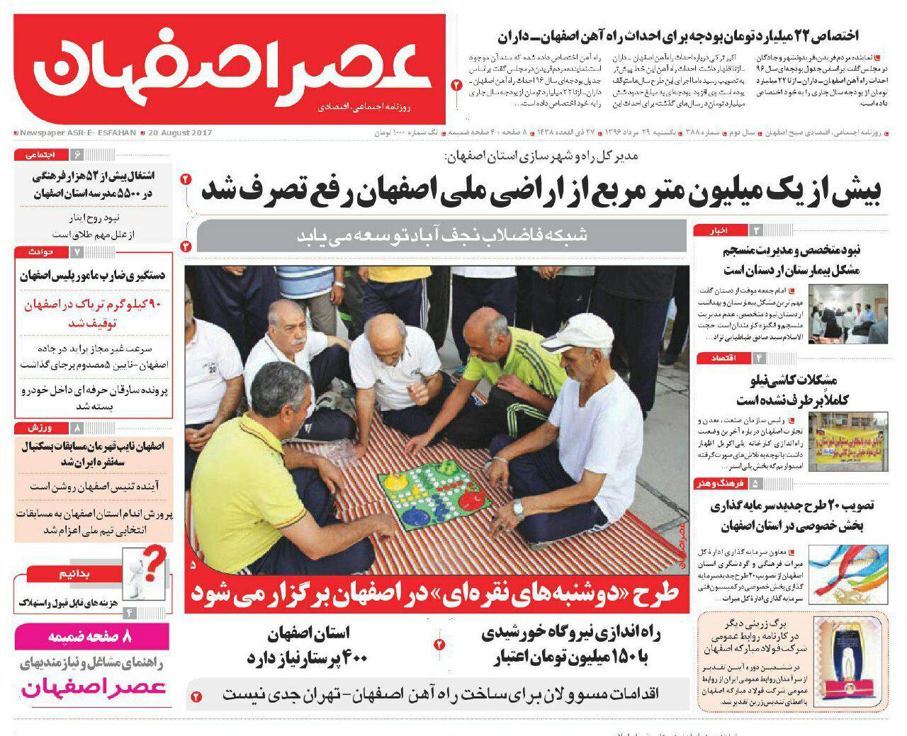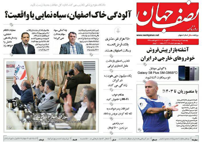 عناوین روزنامه های صبح اصفهان ،بیست و نهم مرداد 1396