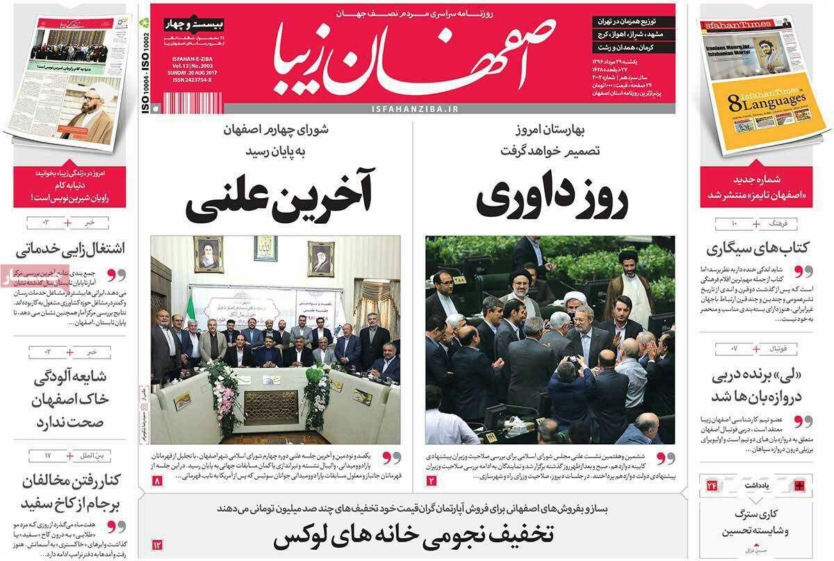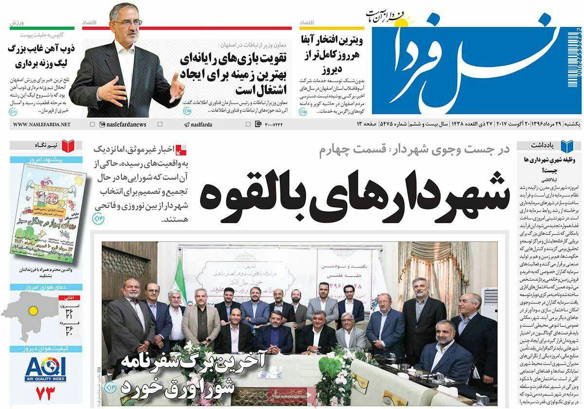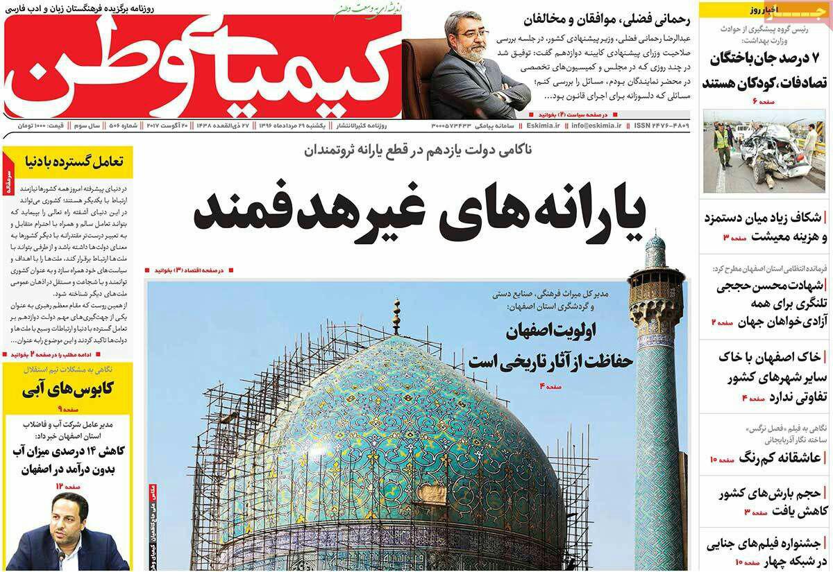 عناوین روزنامه های صبح اصفهان ،بیست و نهم مرداد 1396