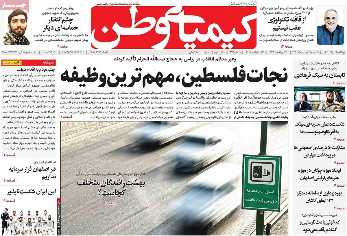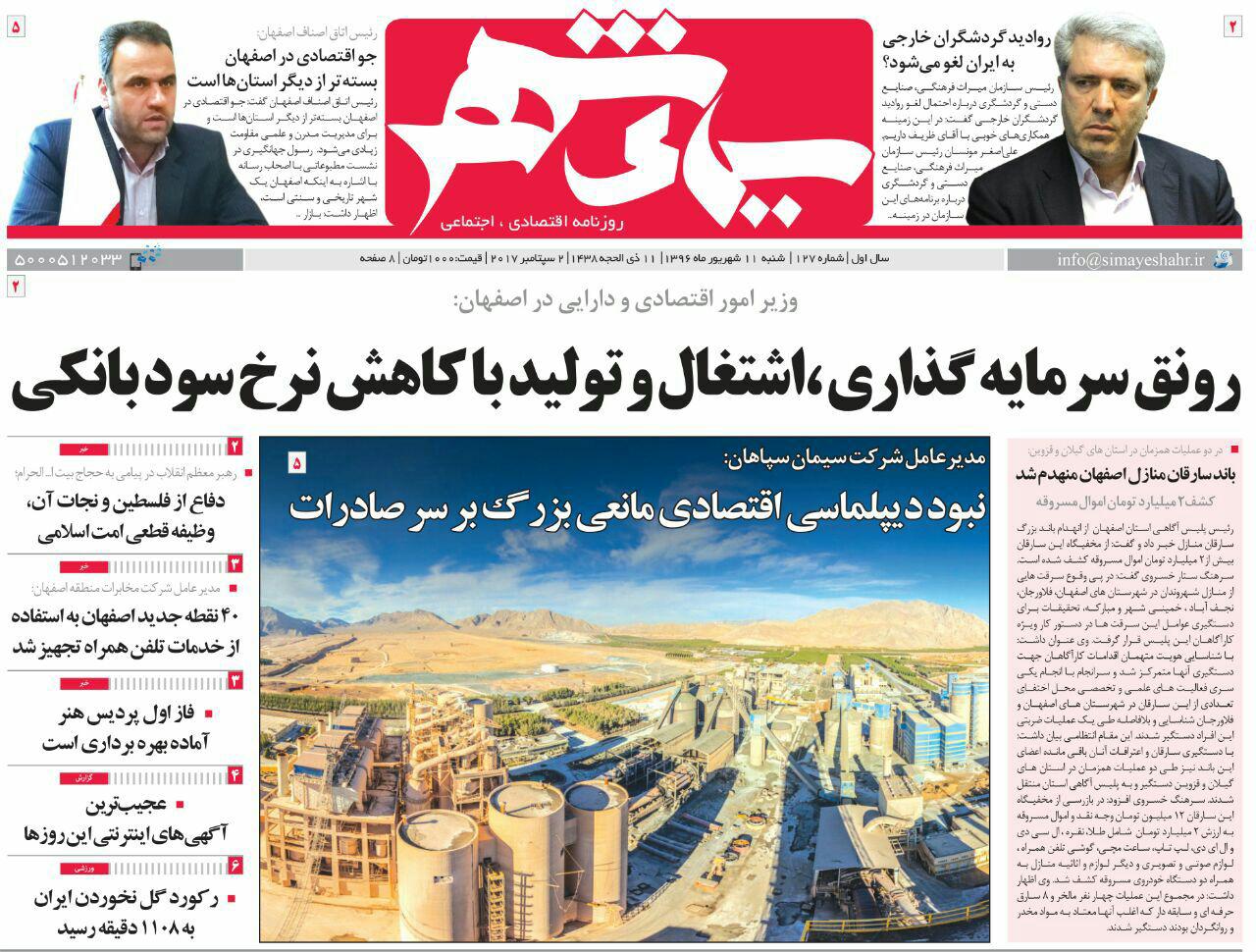 عناوین روزنامه های صبح اصفهان ، یازدهم شهریور 1396
