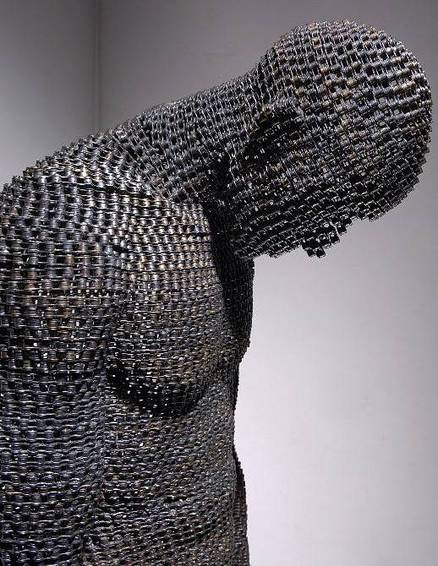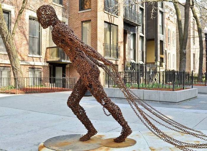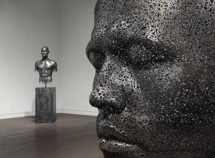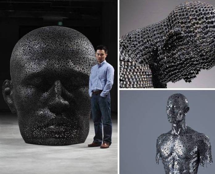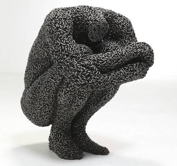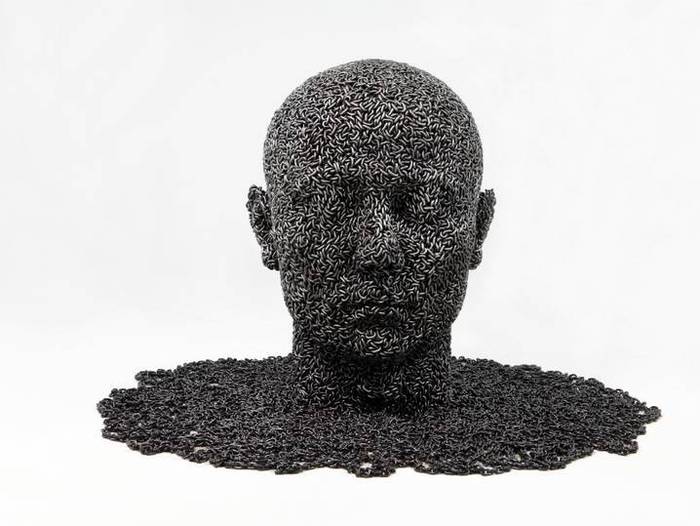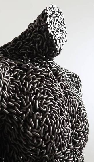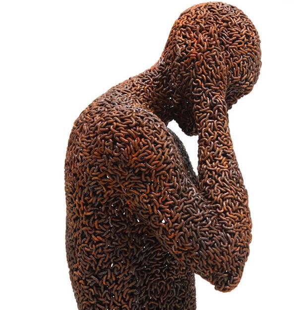 هنرمند جوان کرهای زنجیرهای آهنی را ابزار ساخت مجسمه های انسان نما قرار داده است!