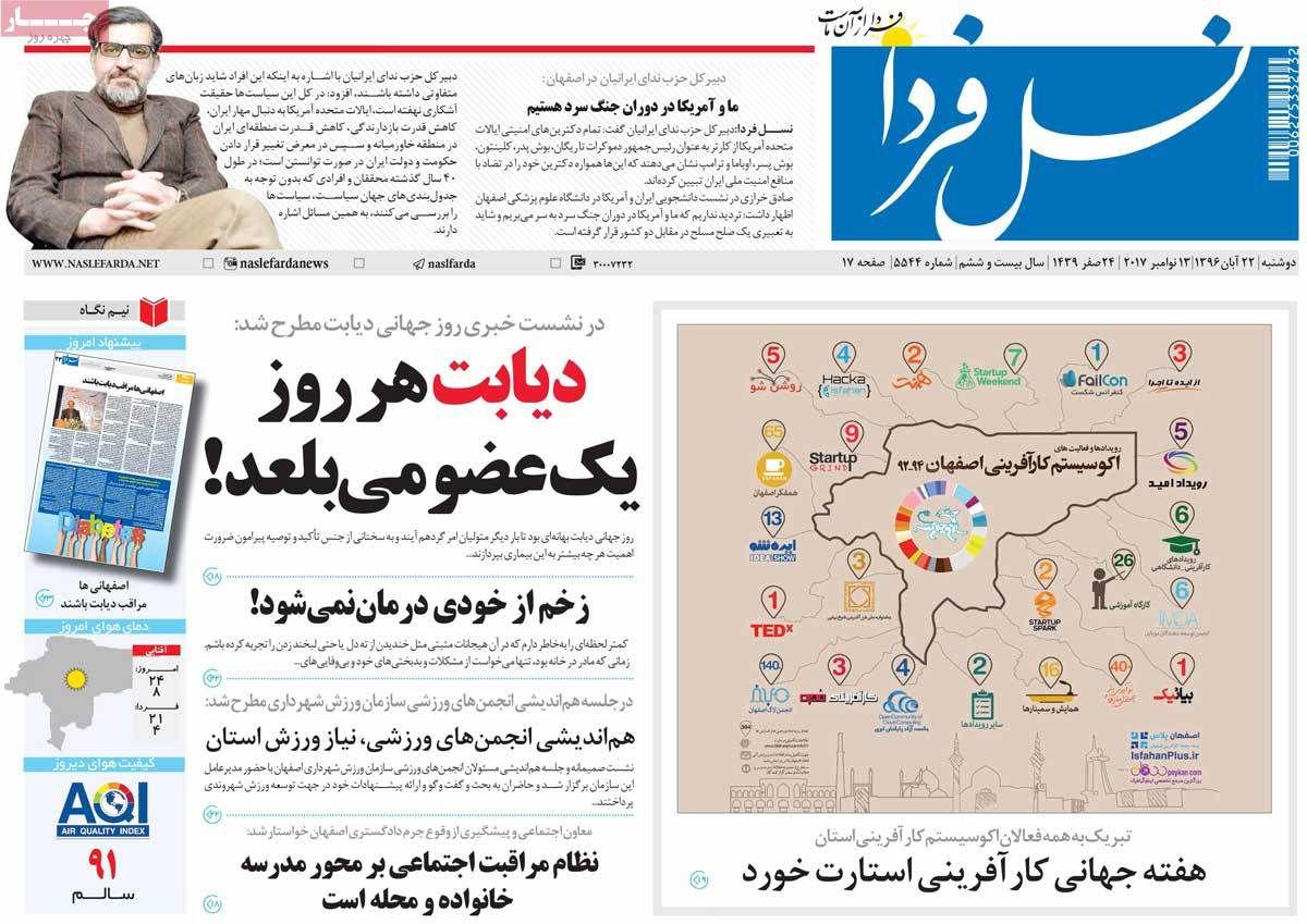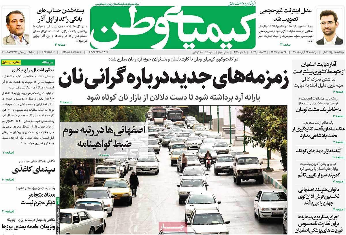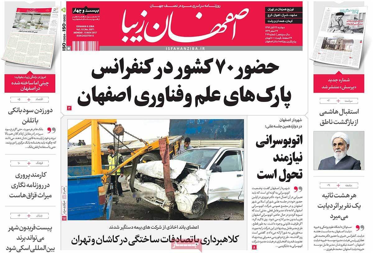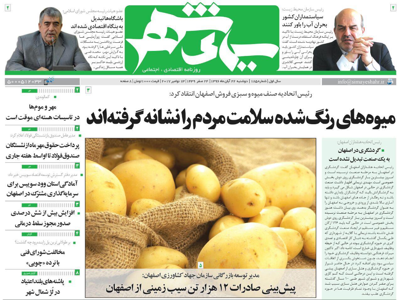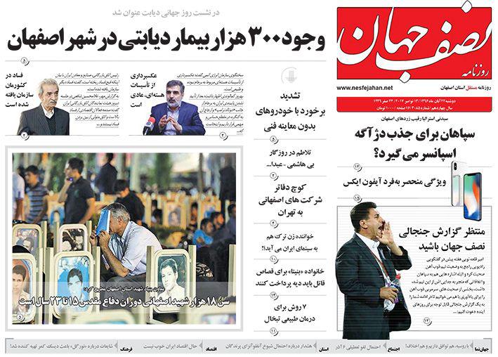عناوین مهم روزنامه های اصفهان، 22 آبان