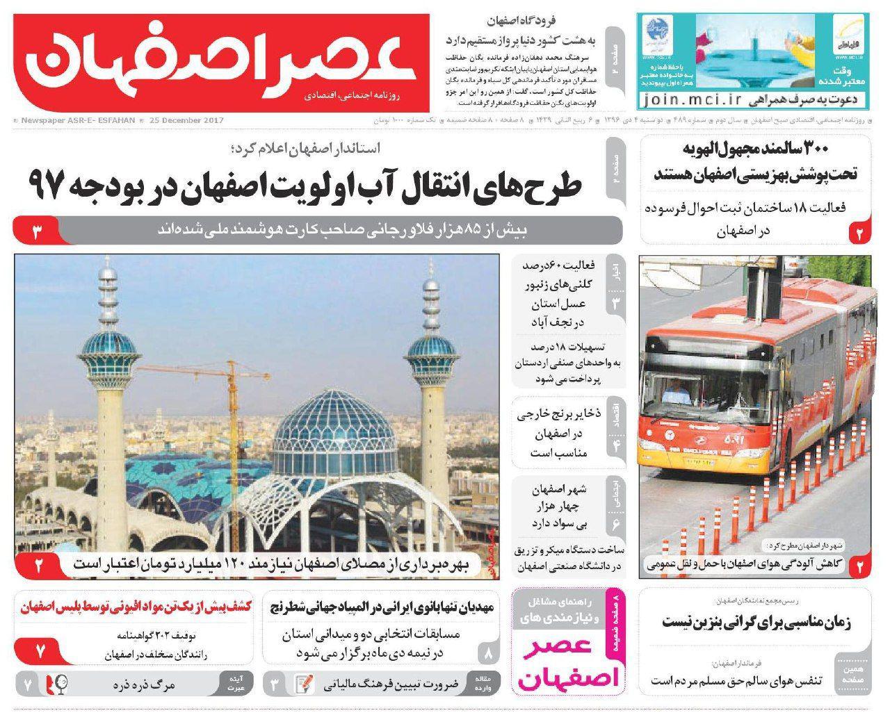 روزنامه ها امروز از افزایش دما و آلودگی هوای اصفهان با شروع زمستان تا خواهرخواندگی بین شهرهای استان نوشتند.