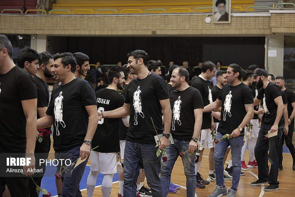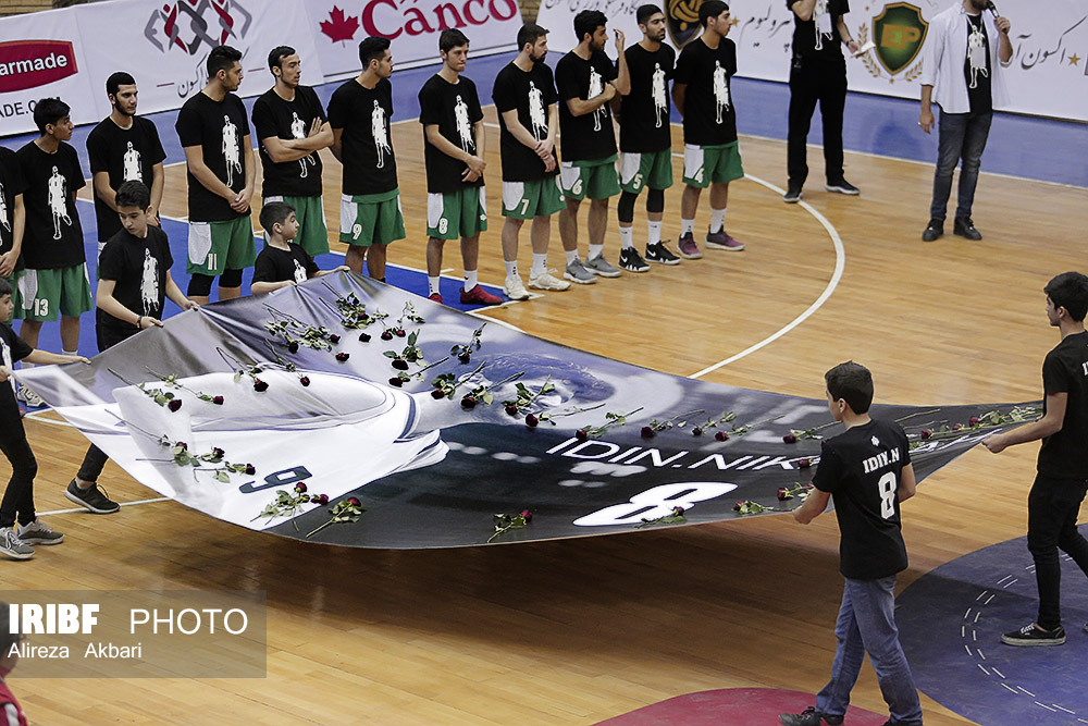 ملی پوشان قدیمی و جدید بسکتبال با قرار دادن شاخه گل روی عکس بزرگ مرحوم نیکخواه بهرامی، یاد او را گرامی داشتند و در بین دو نیمه مسابقه تیمهای اکسون و شمس، یک پیراهن شماره ٨ تیم ملی و تندیس آیدین به پدر او اهدا شد.