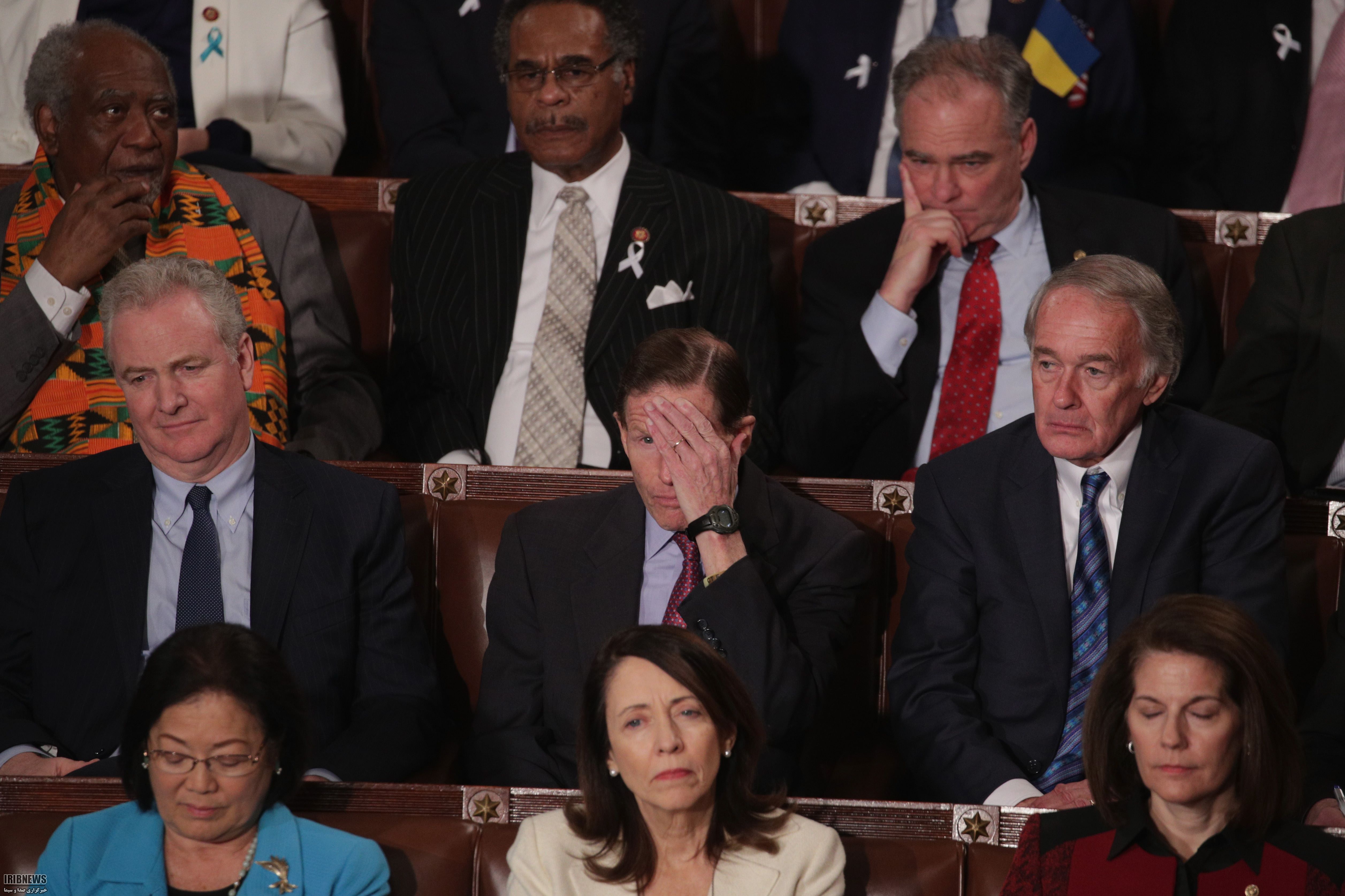 خبرگزاری صداوسیما به نقل از شبکه تلویزیونی الجزیره؛ نمایندگان دموکرات در زمان سخنرانی رئیس جمهور آمریکا در کنگره در بسیاری از موارد از تشویق او و بلند شدن به احترام سخنان او خودداری کردند.