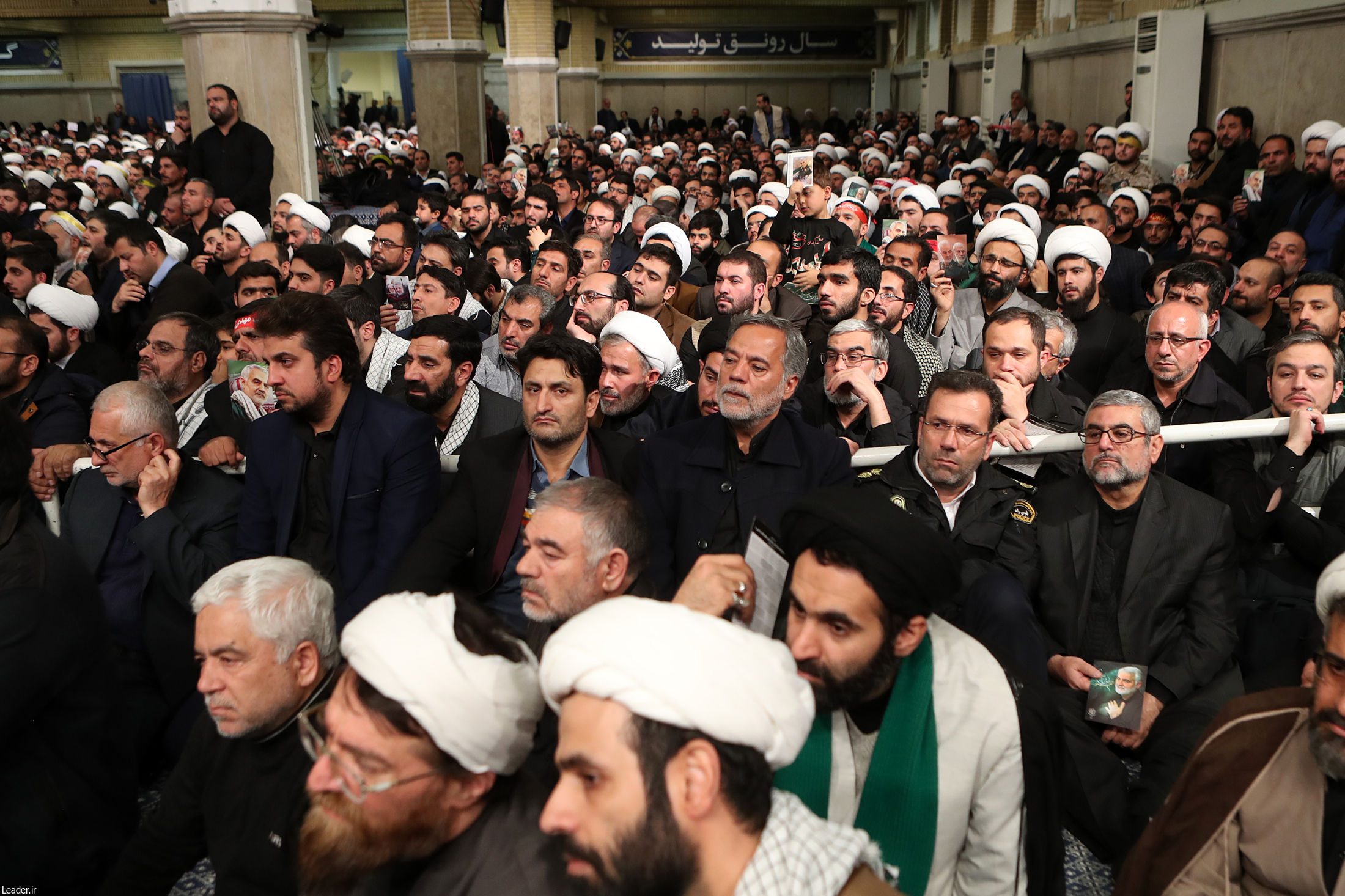 رهبر معظم انقلاب اسلامی همچنین با ابراز تأسف عمیق از حادثه تلخ روز گذشته در مراسم تشییع شهید سلیمانی در کرمان گفتند: به خانوادههای این هممیهنان عزیز کرمانی تسلیت عرض میکنم و امیدوارم ارواح مطهر این جانباختگان با شهید سلیمانی محشور شوند.
