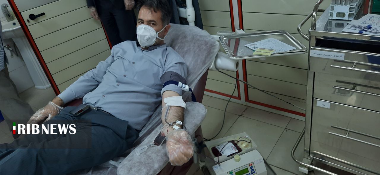 اهدای خون استاندار و جمعی از کارکنان صدا وسیمای مرکز اردبیل بمناسبت هفته انتفال خون