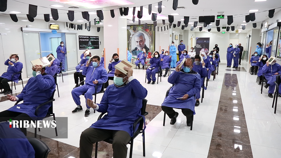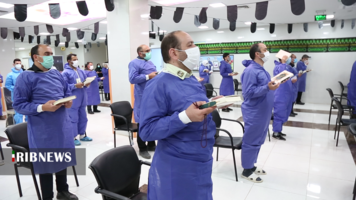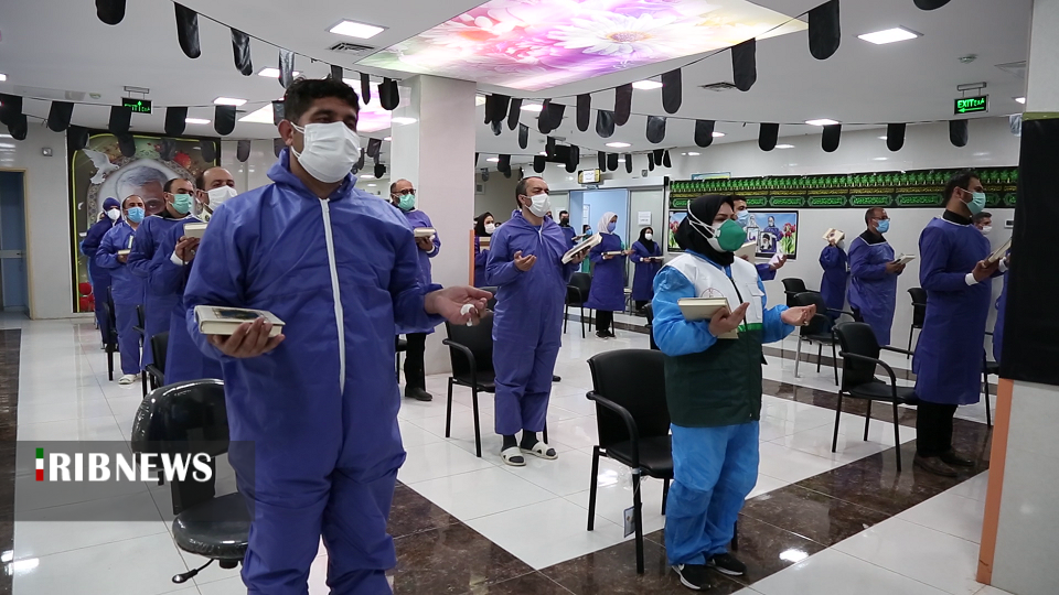 به گزارش خبرگزاری صدا و سیمای مرکز اردبیل؛ مراسم احیاء دومین شب از لیالی قدر در مراکز درمانی استان اردبیل برگزار شد. در بیمارستان امام خمینی(ره) اردبیل هم با حضور پزشکان، پرستاران و کادر بهداشتی مراسم شب قدر برگزار شد و شرکت کنندگان برای شفای بیماران و ریشه‌کنی بیماری کرونا دعا کردند. مراسم احیاء شب قدر کادر درمان بیمارستان امام خمینی اردبیل