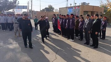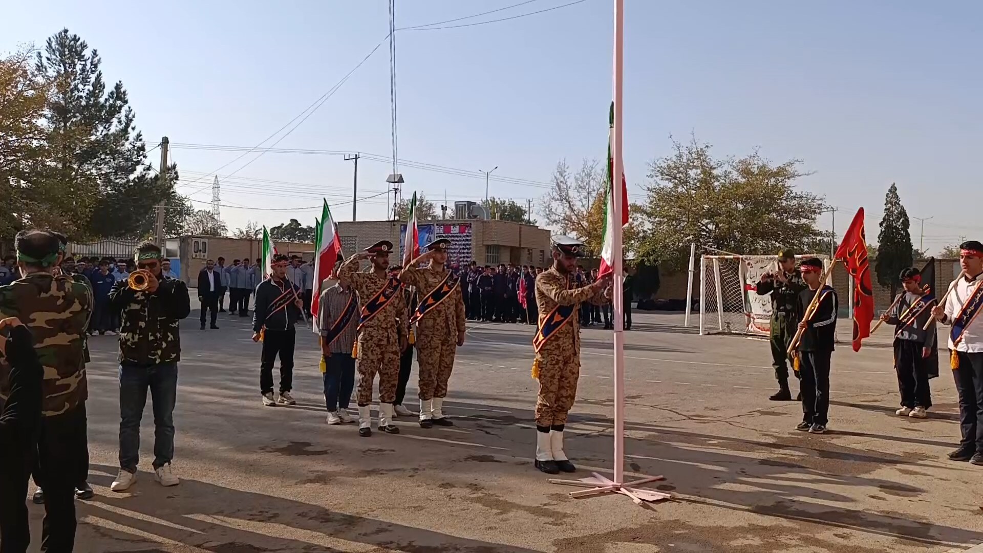 اجرای سرود دانش آموزان بسیجی و تجلیل از ۴ فرمانده نمونه و فعال واحد بسیج دانش آموزی از برنامه‌های این صبحگاه بود.